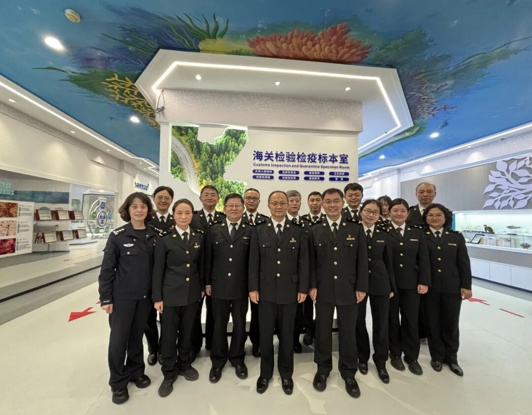 (党委副书记杨德春与检验检疫技术交流部主任钱明共同为“海关检验检疫标本室”揭牌)