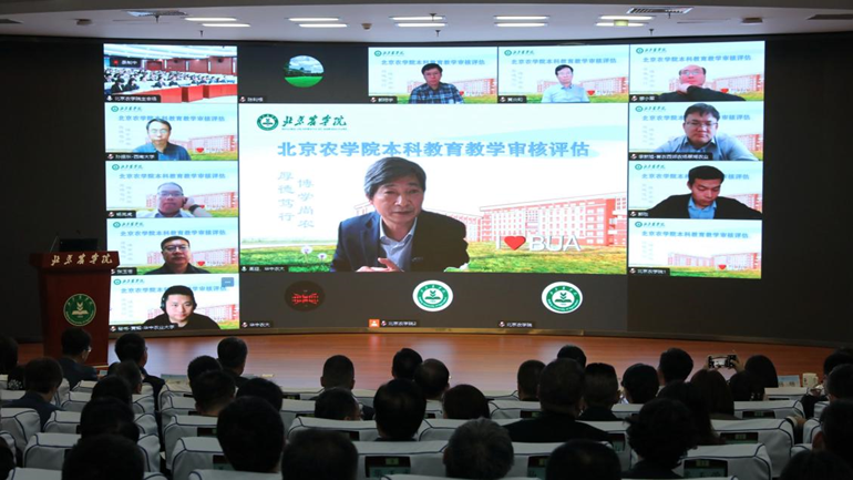 段留生从“学校基本情况、本科教育教学改革成效、学校特色工作”三个方面,全面介绍了学校办学历史和发展成效、学校扎实开展自评自建的工作情况,以及打造“红绿融合”的思政金课、构建都市农林特色人才培养模式、打造服务首都乡村振兴“北农样板”等特色工作情况。段留生表示,学校将聚焦立德树人根本任务,坚持以高质量党建引领学校事业高质量发展,加快全面建设国内一流国际知名都市农林特色高水平应用型大学的步伐,为服务国家战略需求和新时代首都发展做出新的更大贡献。