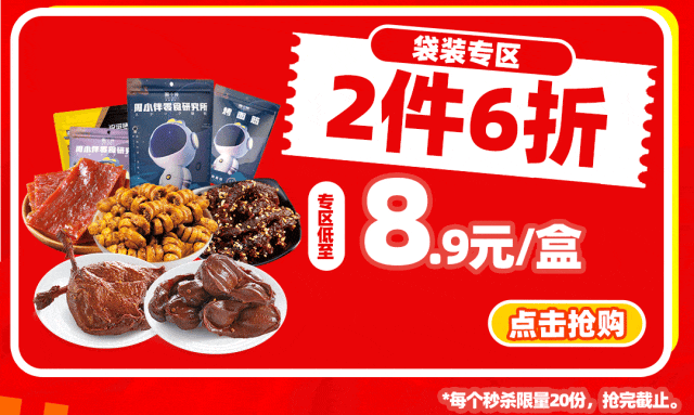 摘要:1.店庆专属福袋,低至5.9元/袋,限时秒杀!\x0d\x0a2.卤味礼盒拼团抽奖,赢取0元鸭肉礼盒!\x0d\x0a3.更多福利, 点击查看!