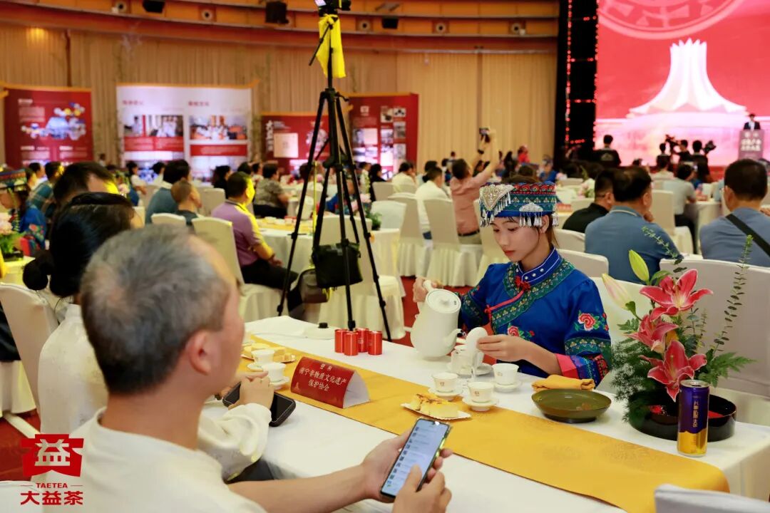 活动现场以图文的形式精心呈现了大益集团的发展历程,从勐海茶厂建厂84周年、大益转型20年的辉煌历史,到其在广西发展的轨迹,每一处细节都体现了大益人的不懈追求与匠心独运。同时,关于广西茶与茶马古道、海上丝绸之路的历史分享,展现了广西茶在历史长河中的重要影响力。而大益八式的茶道表演,更是将“中国传统制茶技艺及其相关习俗”这项“非遗”以最优美和直观的形式呈现在嘉宾面前。