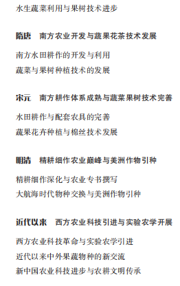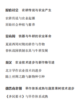 《新时代中华农耕文明简史》以历史时期为脉络,关注传统农耕文明中的粮食、蔬菜、果树、花卉、耕作、工具、肥料、畜牧、兽医、丝棉、水利、物候、思想、饮食、习俗、传说,以及近代农业科学等领域。全书聚焦粮食、果树、蔬菜、花卉等作物起源、驯化、栽培、种植、杂交、引种、传播、利用、饮食、技术、文化等内容,重点关注起源分布规律、驯化杂交过程、种植技术发展、耕作方法进步、利用途径变化、中外作物引种、全球物种交换、科学技术影响、饮食文化变迁。全书打通了传统农业史与农业考古、科技史、农学史、植物史、作物史、交流史、现代农业科学成果之间知识条块化的隔阂,运用历史阶段特征划分与单一历史题材集中呈现的撰写方法,进而提高了书籍的历史连贯性、题材完整性、科学科普性,满足大众阅读习惯。