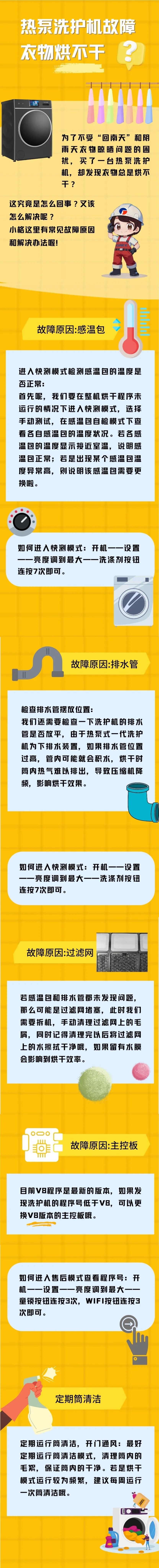 摘要:为了干衣不受天气的影响,特意买了热泵洗护机,结果却发现衣物总是烘不干?故障原因和解决方法都在这里啦!
