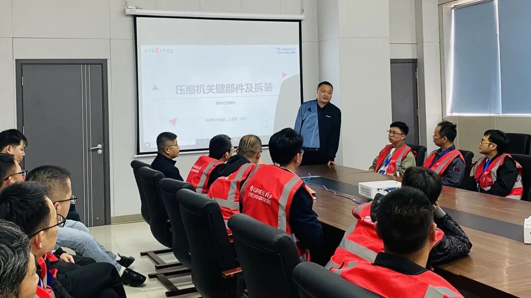 压缩机的生产离不开严格的生产条件和精湛的工艺,为让学员体验压缩机各零件制造和生产的严格标准,特联合绿控智造基地并邀请工艺部讲师为压缩机拆装实操进行理论基础培训。
