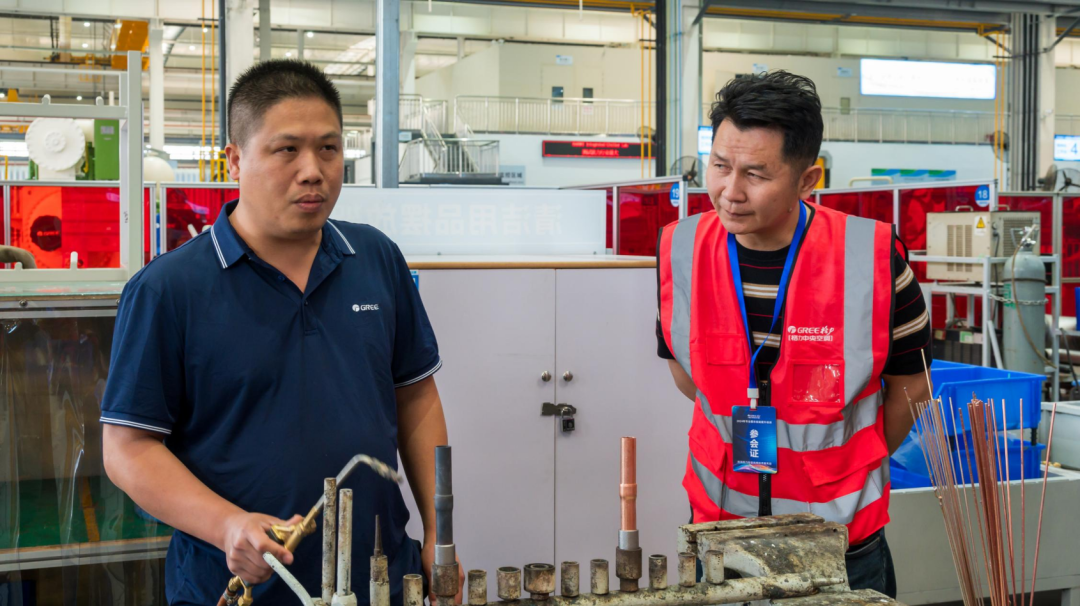 钎焊实操内容为铜-铜和钢-铜焊接,讲师在操作中告知厂内的焊接要点,讲解避免过烧、虚焊、氧化等情况出现的操作注意事项。