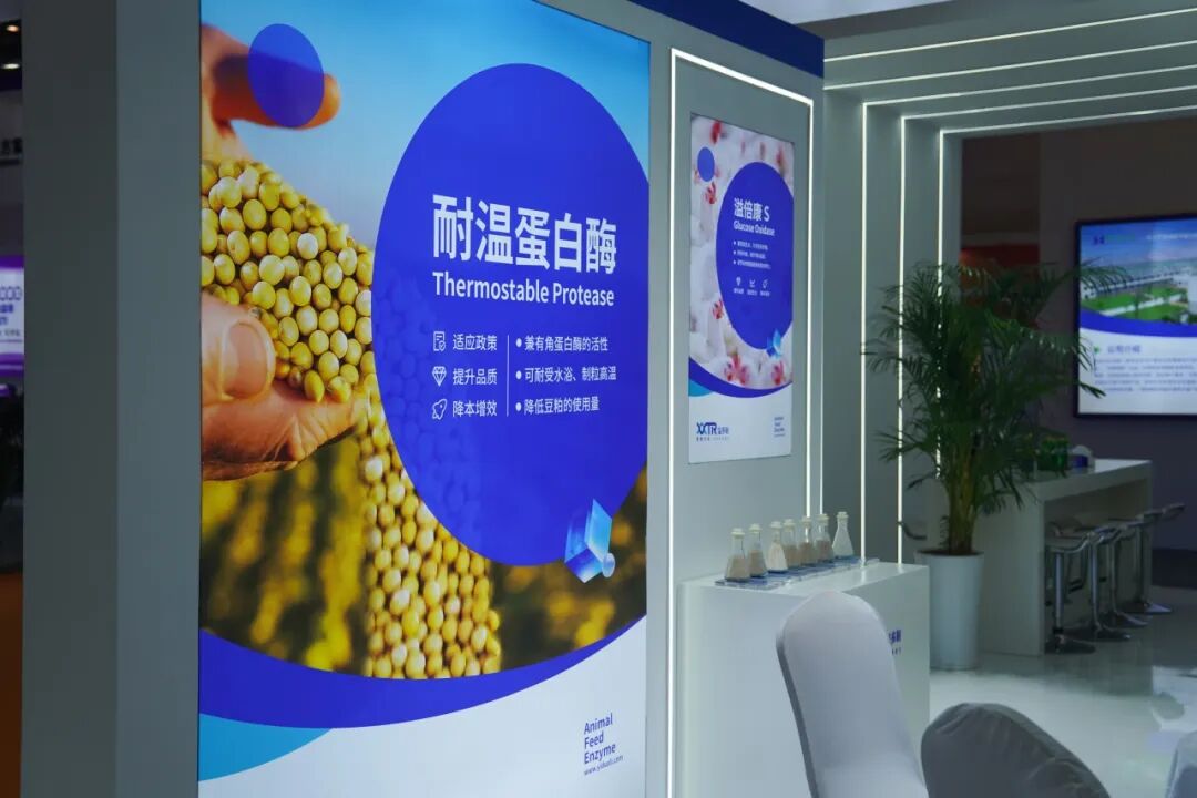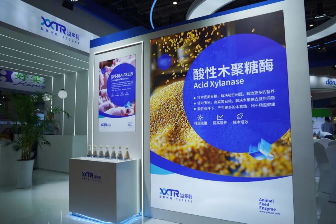 溢多利展台设计和产品展示区科技感十足,成为全馆焦点。多款明星产品:酸性木聚糖酶,耐温蛋白酶、溢倍康S、A-F811S浓缩复合酶及博落回散等亮相展会,全面展示公司在饲料领域的最新成果和技术实力,吸引各界领导莅临参观、国内外参展客户前来交流洽谈。