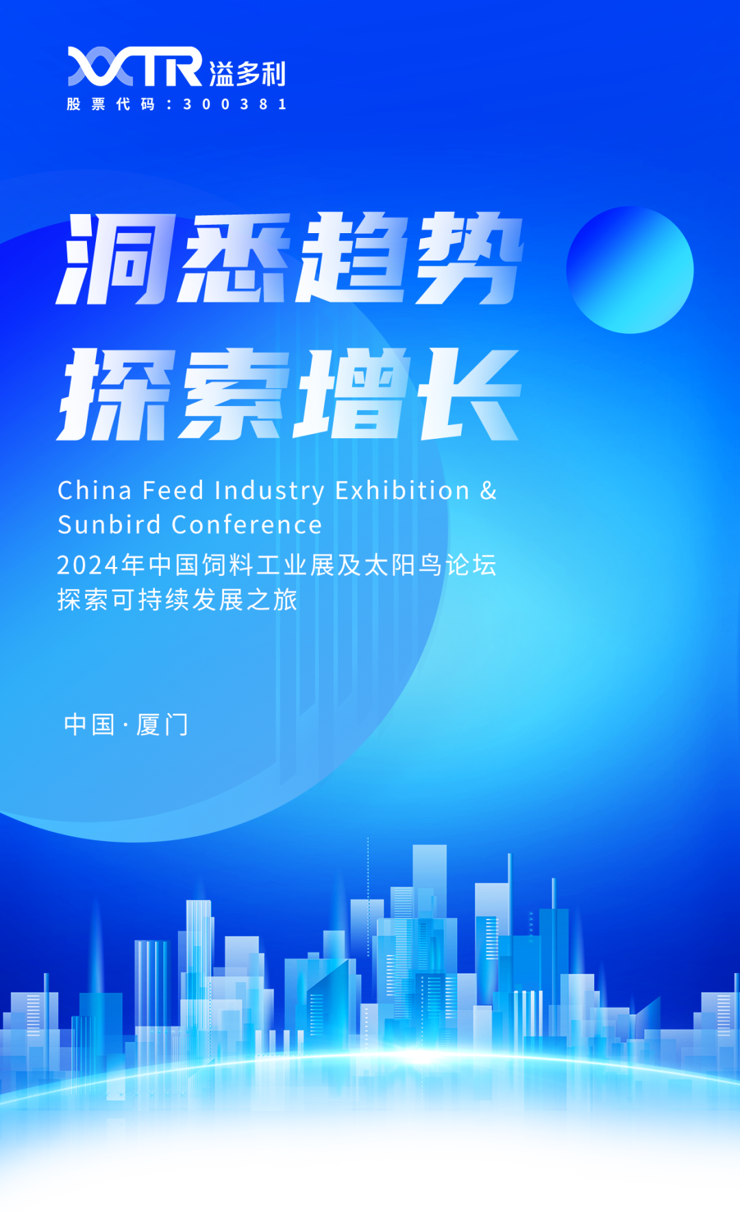 随着科技的飞速发展和人们生活水平的不断提高,饲料工业作为农业的重要支撑,正迎来前所未有的发展机遇。4月15日至20日,溢多利先后参加第六届太阳鸟营养与创新大会,以及2024年中国饲料工业展览会,旨在洞悉行业发展趋势,与合作伙伴探索可持续发展,共创美好未来!