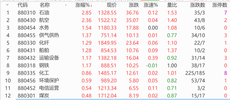 从行业看,石油板块大涨,同时带动钢铁、化工、煤炭、公共事业等板块走强,军工也有一定表现(如图二),主要是中东局势紧张刺激,资金还是防御的心态。建议主要关注低估值高股息的央国企,军工关注飞机链。