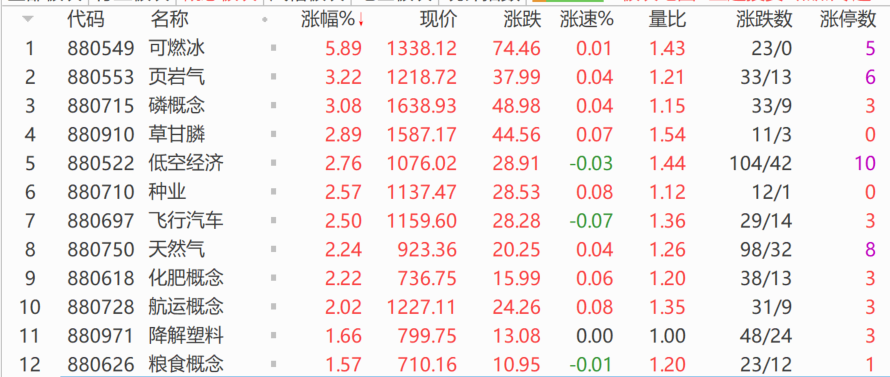 从主题概念看,可燃冰、页岩气、农药、种业、化肥等新概念出现,低空经济等老题材也有活跃(如图四),总体看热点比较散乱,建议高抛波段操作为主,不宜恋战。