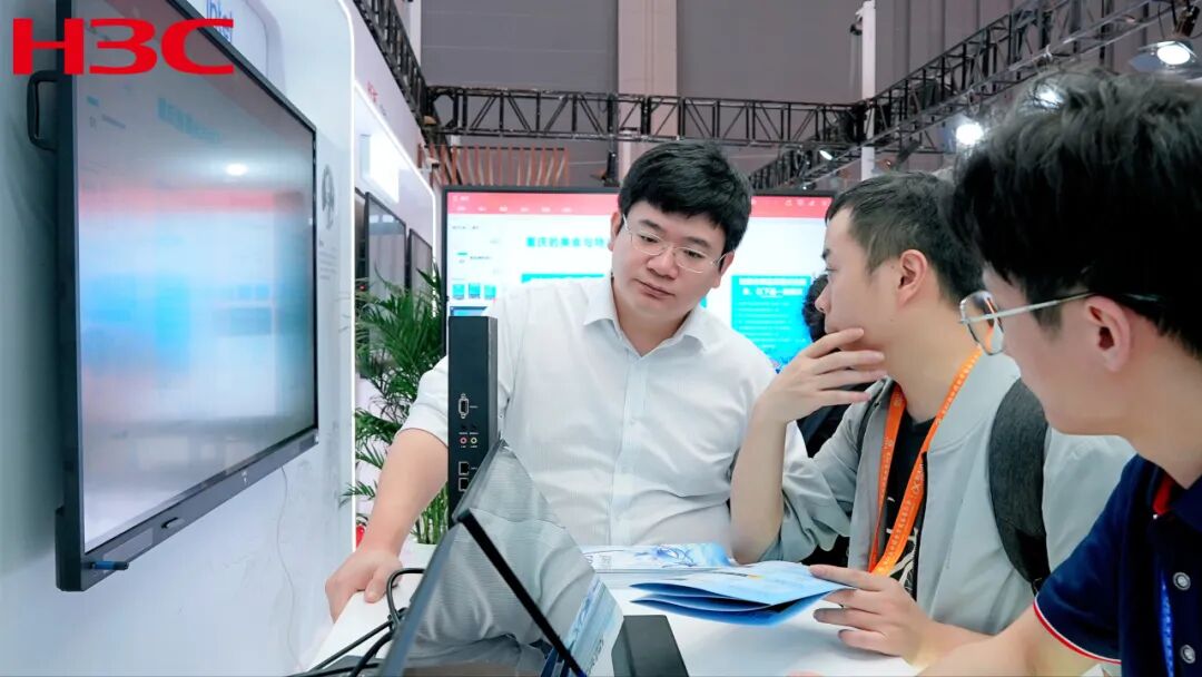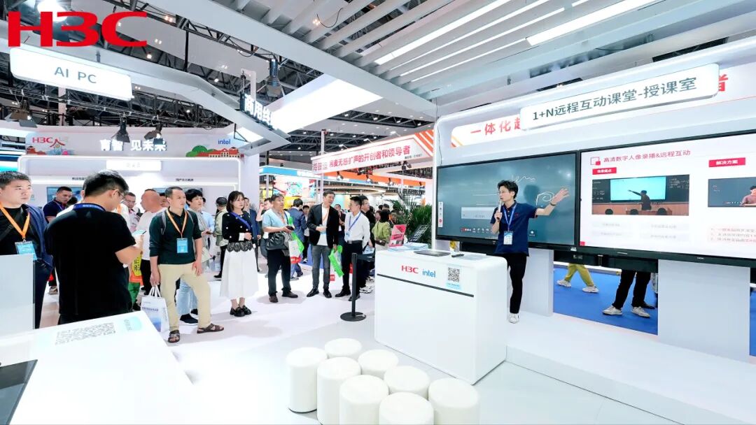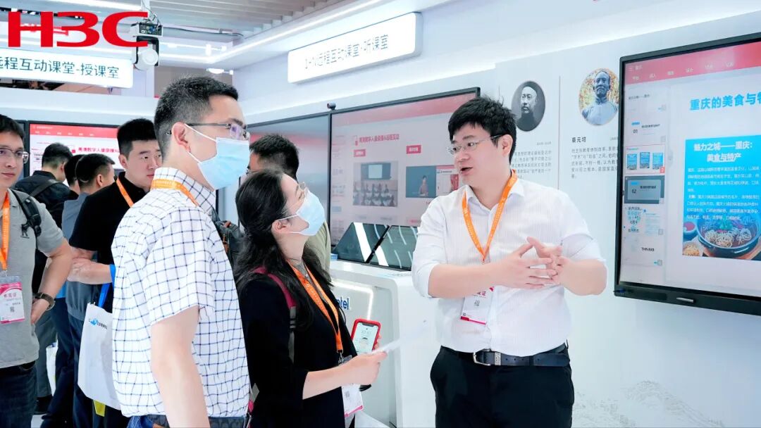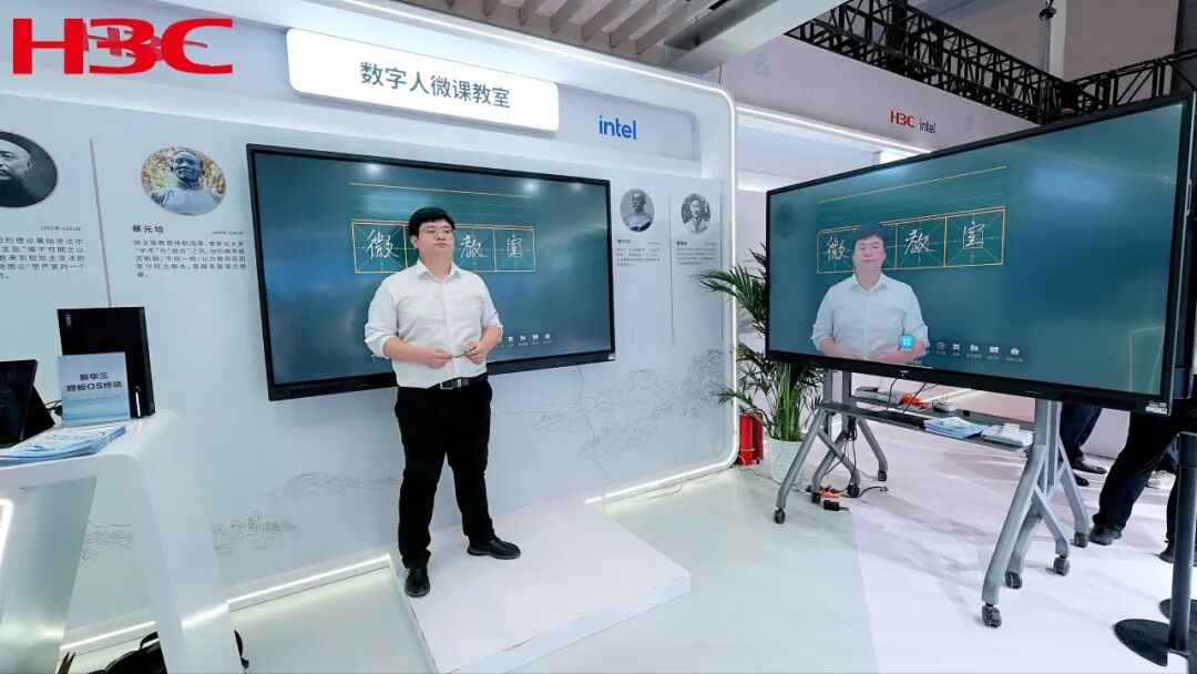 新华三作为行业领先的技术革新者和领航者,本次展会带来了最新智慧教室解决方案以及功能产品,包括嘿板OS 1+N远程互动课堂方案、嘿板OS数字人微课教室方案和嘿板OS终端等,适用于全教学应用场景,赢得多方的关注和肯定。