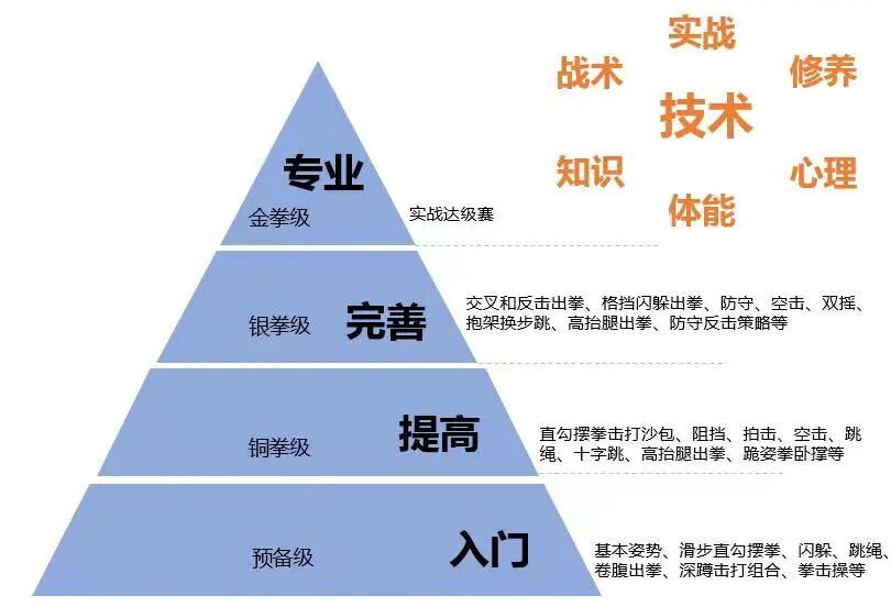 玩儿拳多年来一直致力于娱乐化搏击教学,无论是成人或儿童的搏击课程均以培养长期兴趣为目的。玩儿拳将中国拳击协会运动等级水平内容作为教学大纲基础,通过最权威的机构背书来检验自己的技术动作是否标准,通过证书和勋章让无论是孩子还是成人都能够在训练的过程中能够有收获和荣誉感。