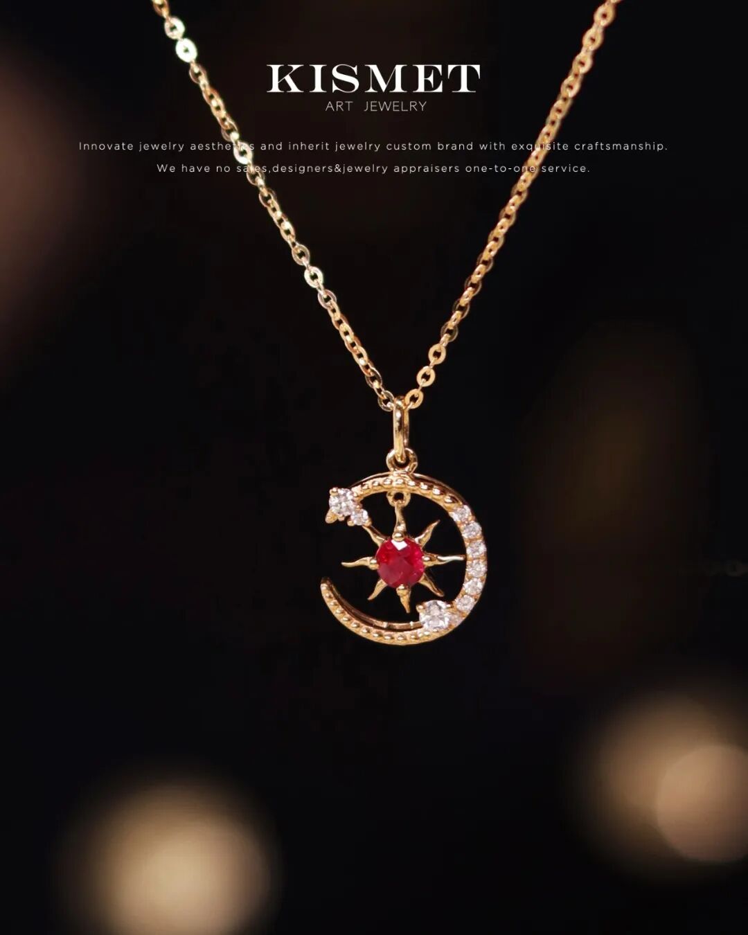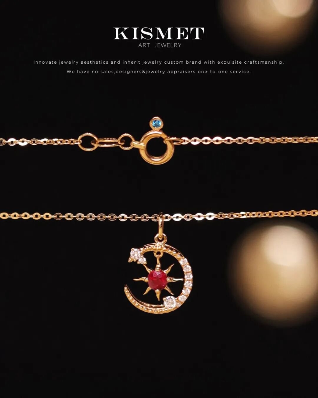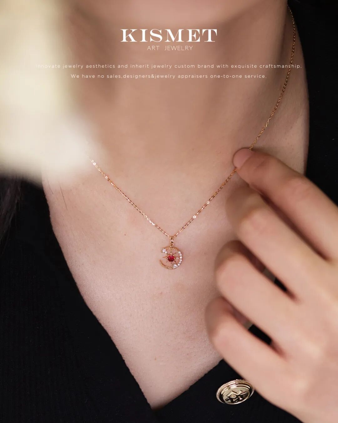 正红色红宝石环以明亮足反钻,星月云的形象跃然眼前,灵动可爱,设计感十足,与波光链相得益彰,熠熠生辉。
