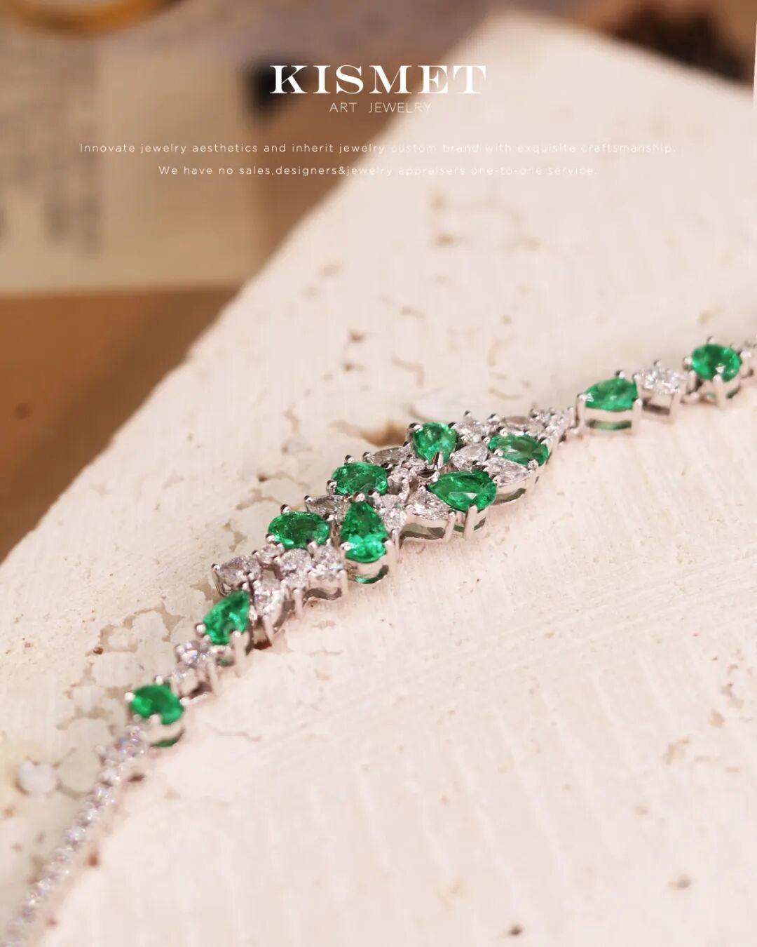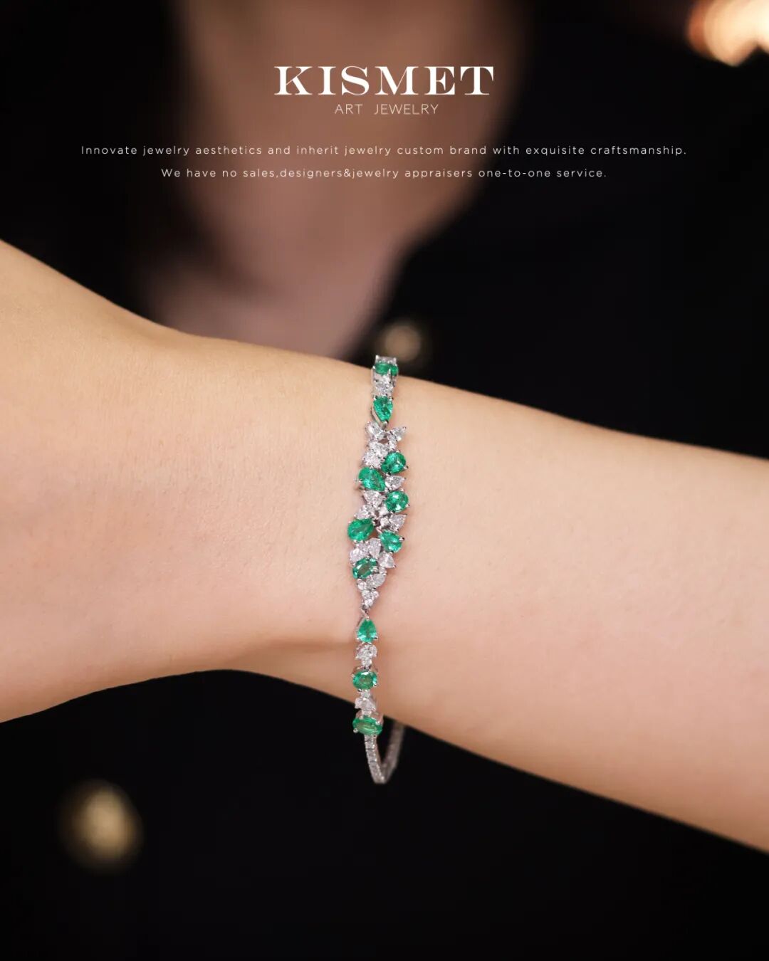 木佐色祖母绿搭配18k白金,甜绿搭配清透,细腻而温婉,静谧又明亮,在您的腕间生机盎然。