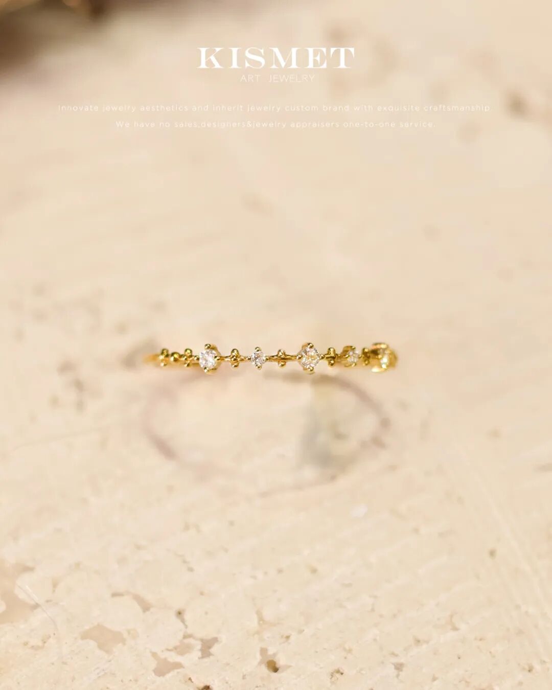 星星点点的小钻组成了戒指,精巧不失独特,低调地闪耀着。有棱有角,做自己的星星,发光发热吧。
