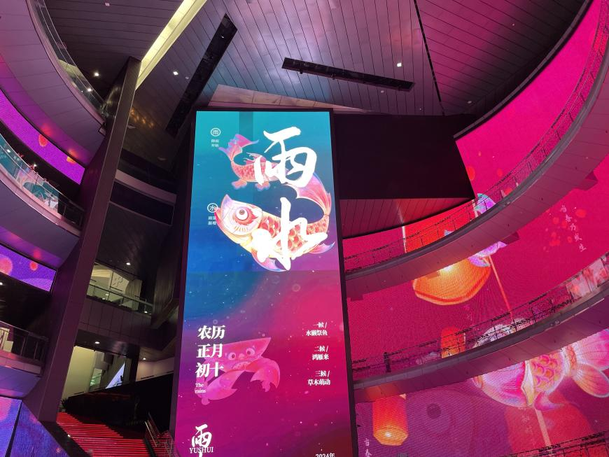 同学们步入中国电影博物馆一楼的中央圆厅,就被圆厅内流动大屏幕深深吸引。屏幕上二十四节气的场景展示,尽展中华传统文化的内涵,祖国壮美山河的呈现,荡气回肠,神秘的宇宙星空,引人遐想。大家驻足观看,情不自禁地发出感叹。