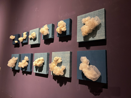 В среду мы ездили в Китайский музей искусств и ремесел. Архитектура там величественная, и очень много экспонатов. Меня больше всего впечатлила вот эта работа. Издали она напоминает туалетную бумагу, но при близости оказывается, что она сделана из марли, которая очень красивая и струящаяся.
