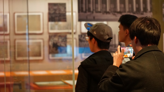 同学们驻足欣赏馆内展品