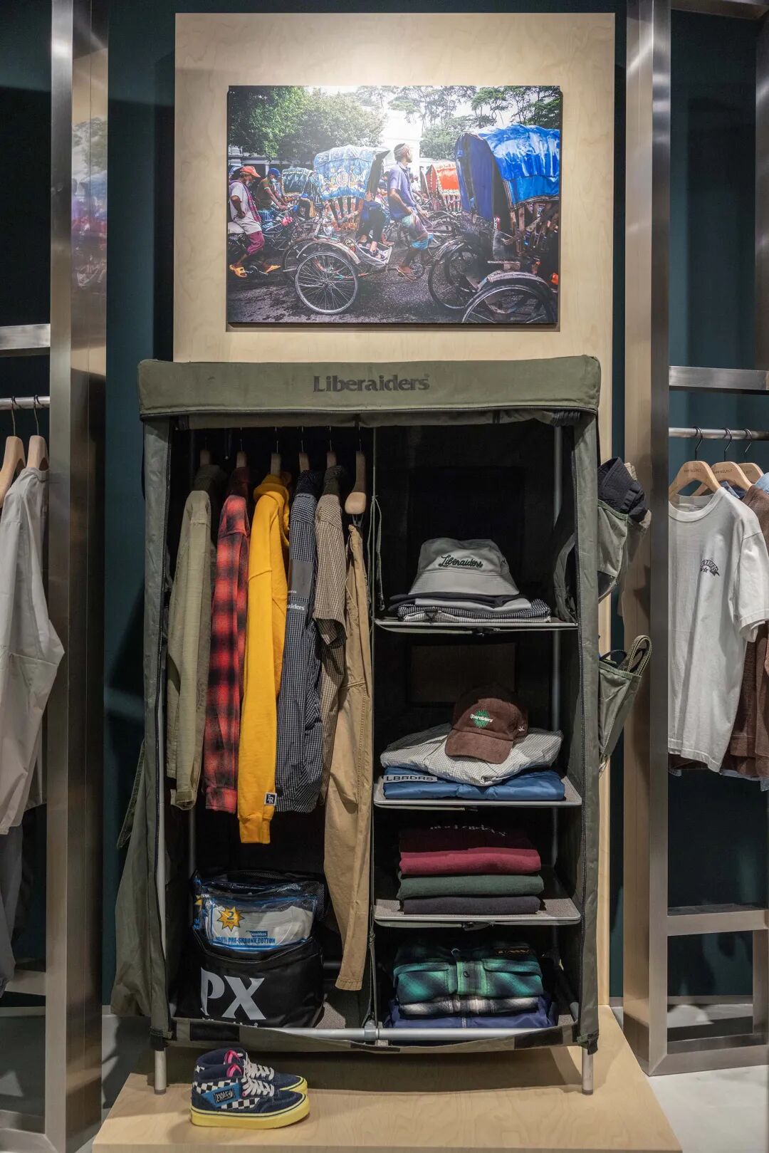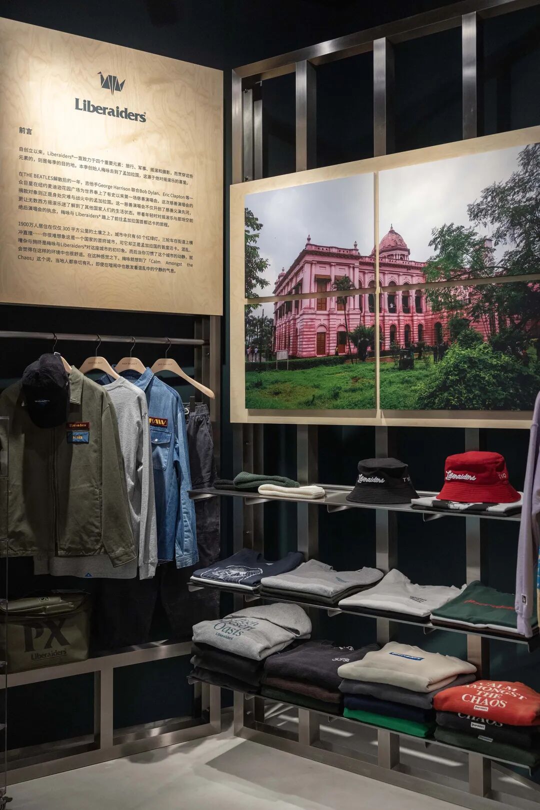 自创立以来,Liberaiders®一直致力于几个重要元素:旅行、摇滚和摄影,而贯穿这些元素的,则是每季的目的地。梅咏到访过古巴、尼泊尔、俄罗斯、德国、越南、日本等国度,你能从店内所陈列的照片通过梅咏的视角进入这些旅程。