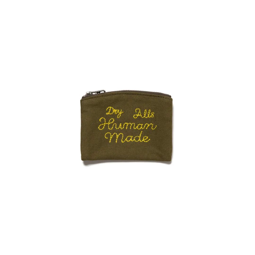 HUMAN MADE 棉帆布面料的卡包,拉链设计,饰有刺绣图案。