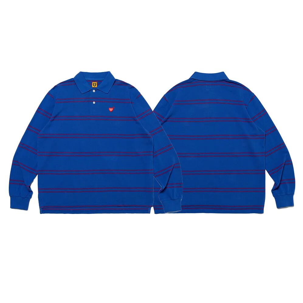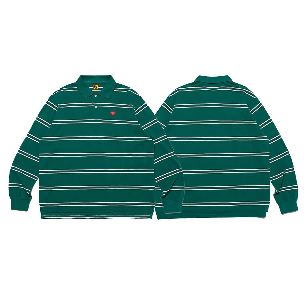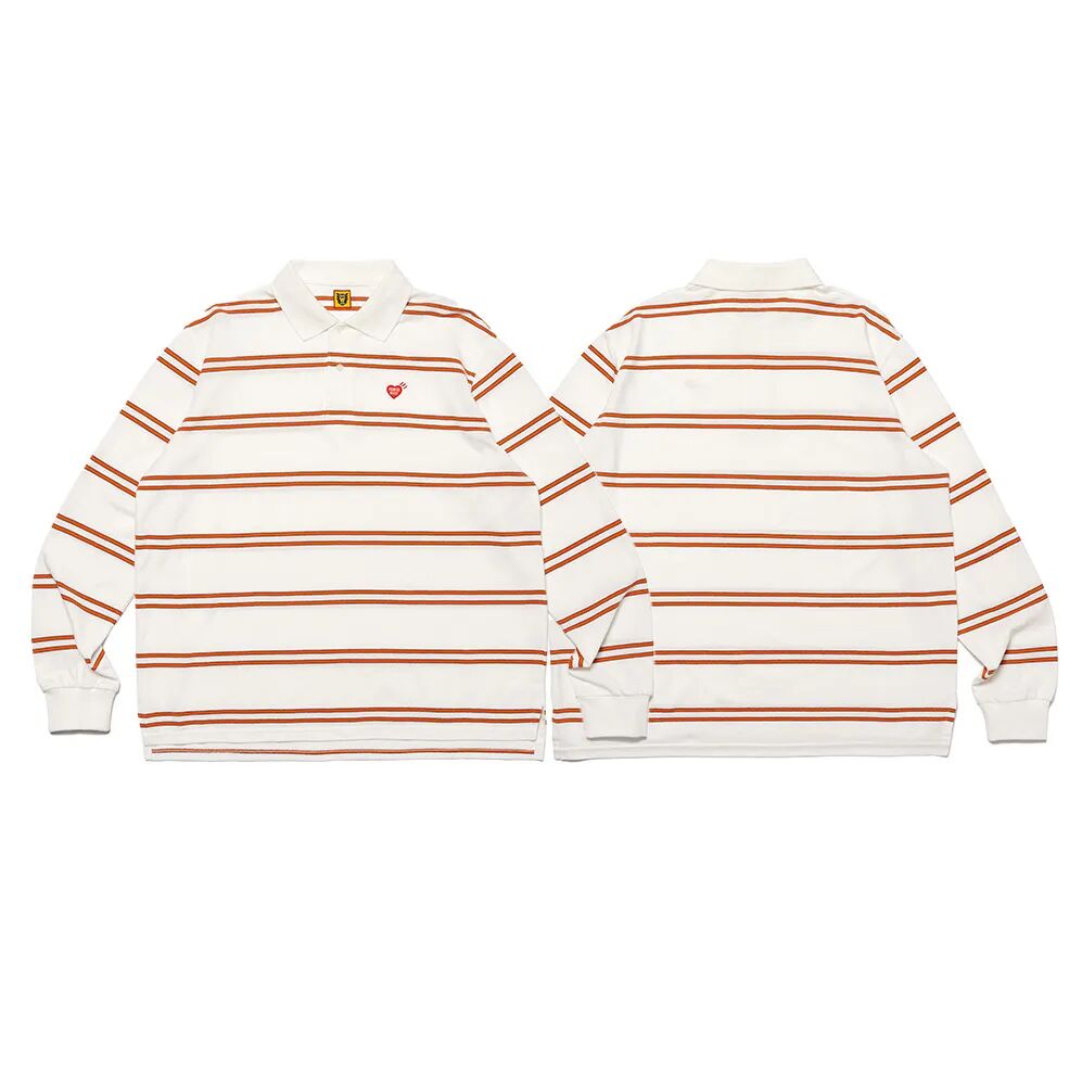 HUMAN MADE 网眼布织造的宽纹长袖POLO衫,宽松版型与落肩设计相辅相成,左胸处的心形贴布点亮运动与潮趣的双重属性。