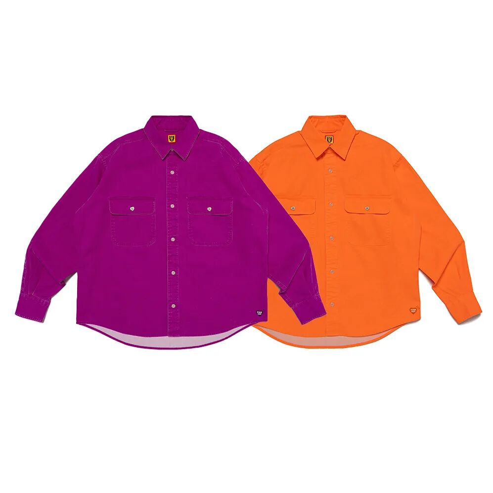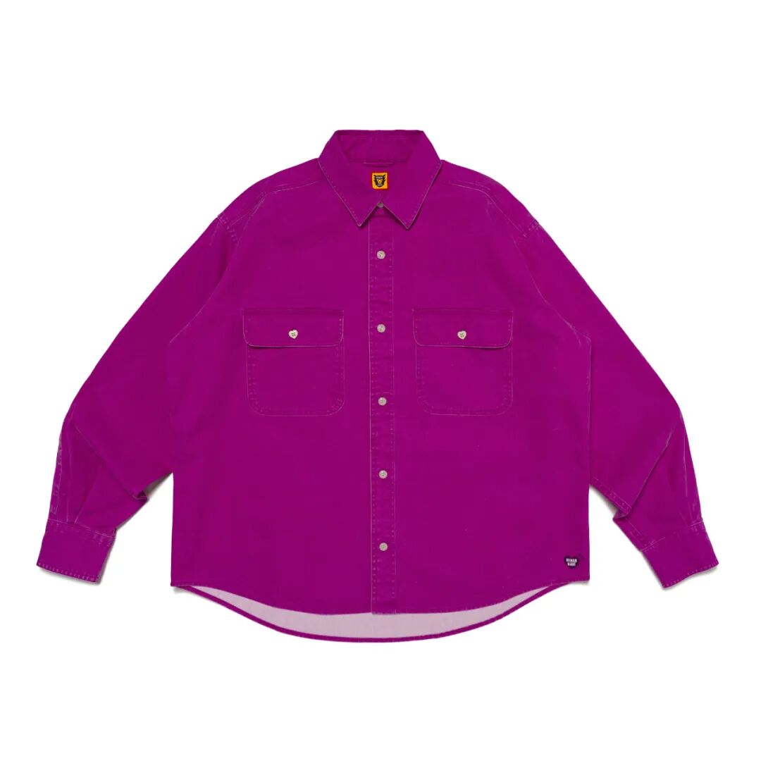 HUMAN MADE 厚实的斜纹面料搭配经典廓形,剪裁打造饱满有型的工装风衬衫,高饱和的色彩与同色肘部贴布设计,于简约中兼具个性表达。