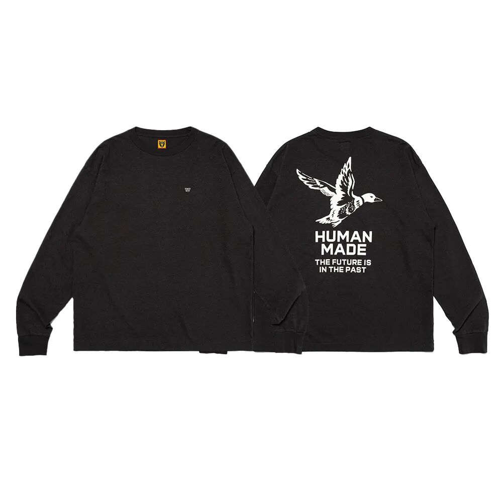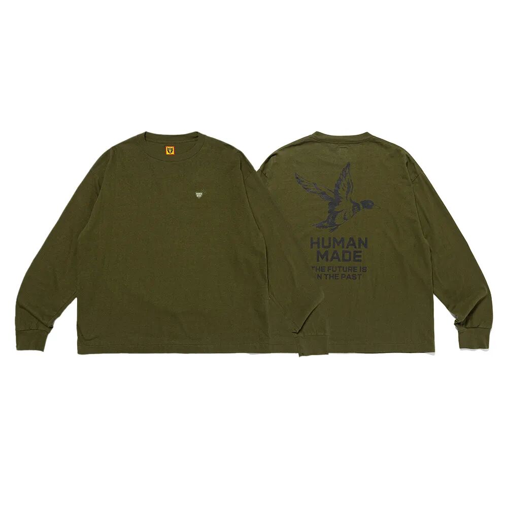 HUMAN MADE 经典剪裁的宽松长袖T恤,竹节棉材质,质感柔软,背面饰有品牌经典鸭子图案,三种颜色可选。