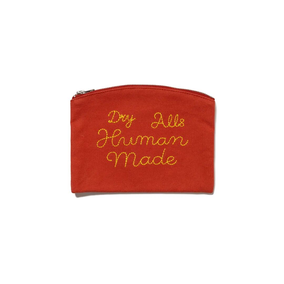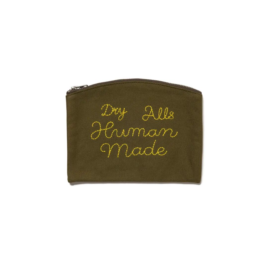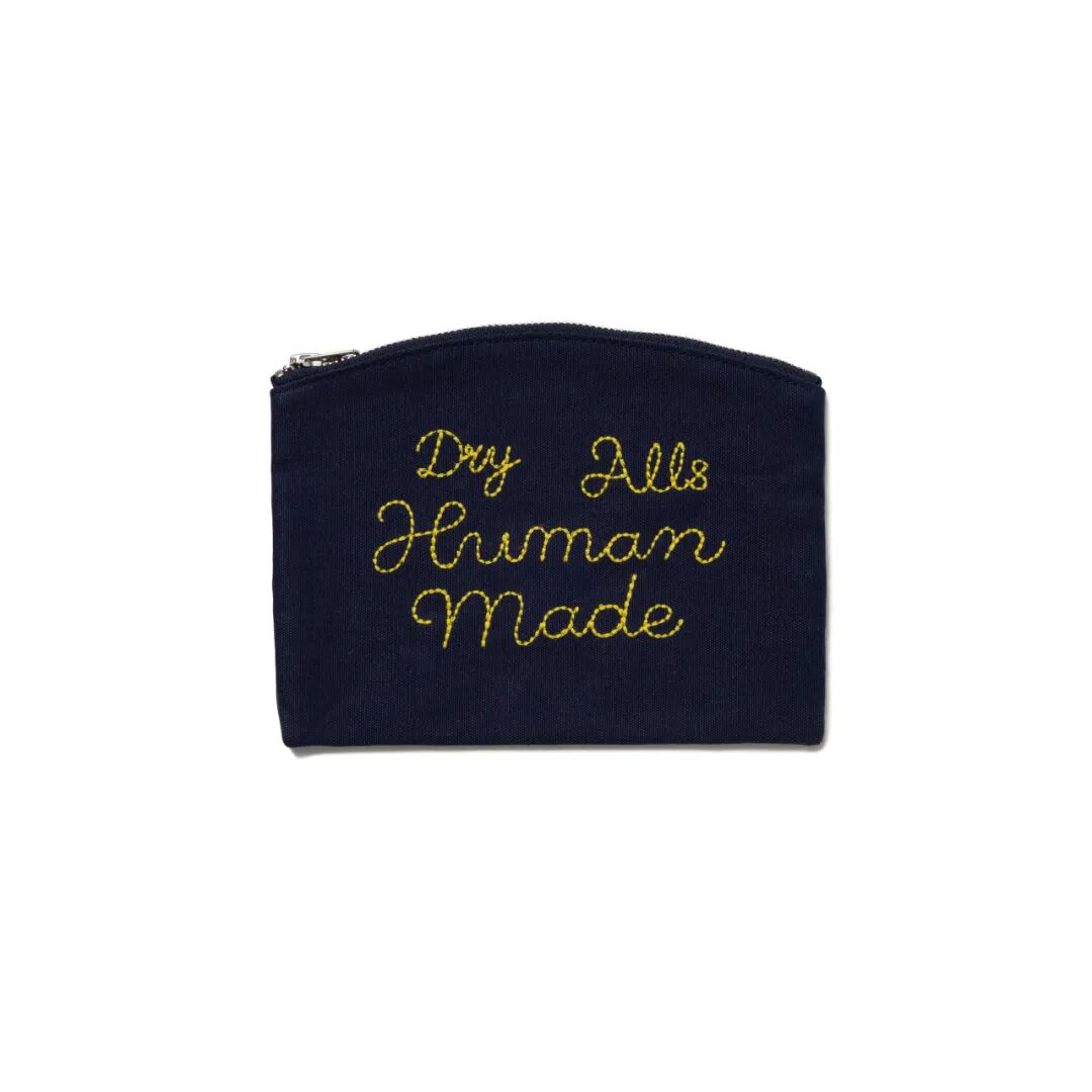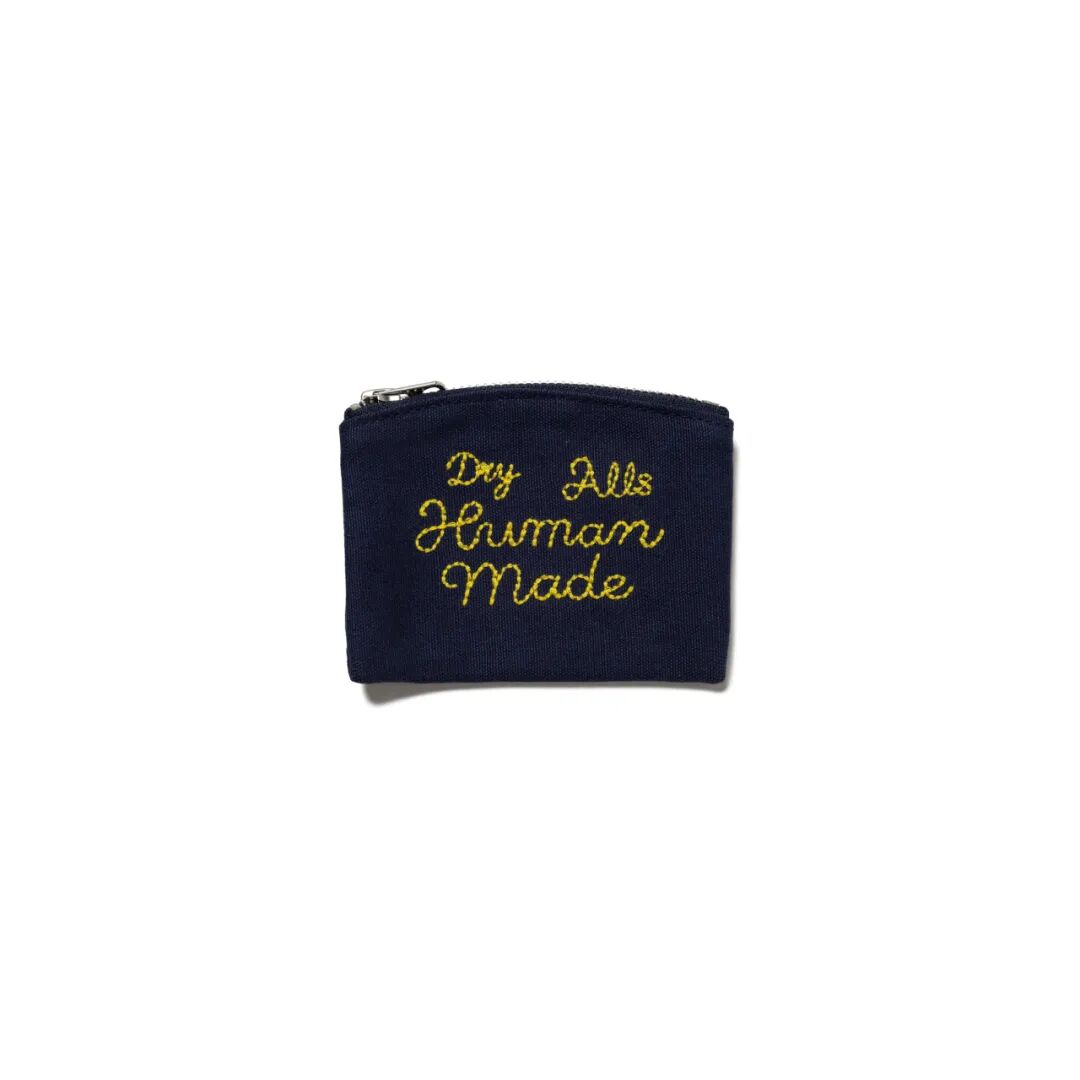 HUMAN MADE 棉帆布面料的零钱包,其特点是圆润的轮廓和以刺绣形式呈现的图形设计。