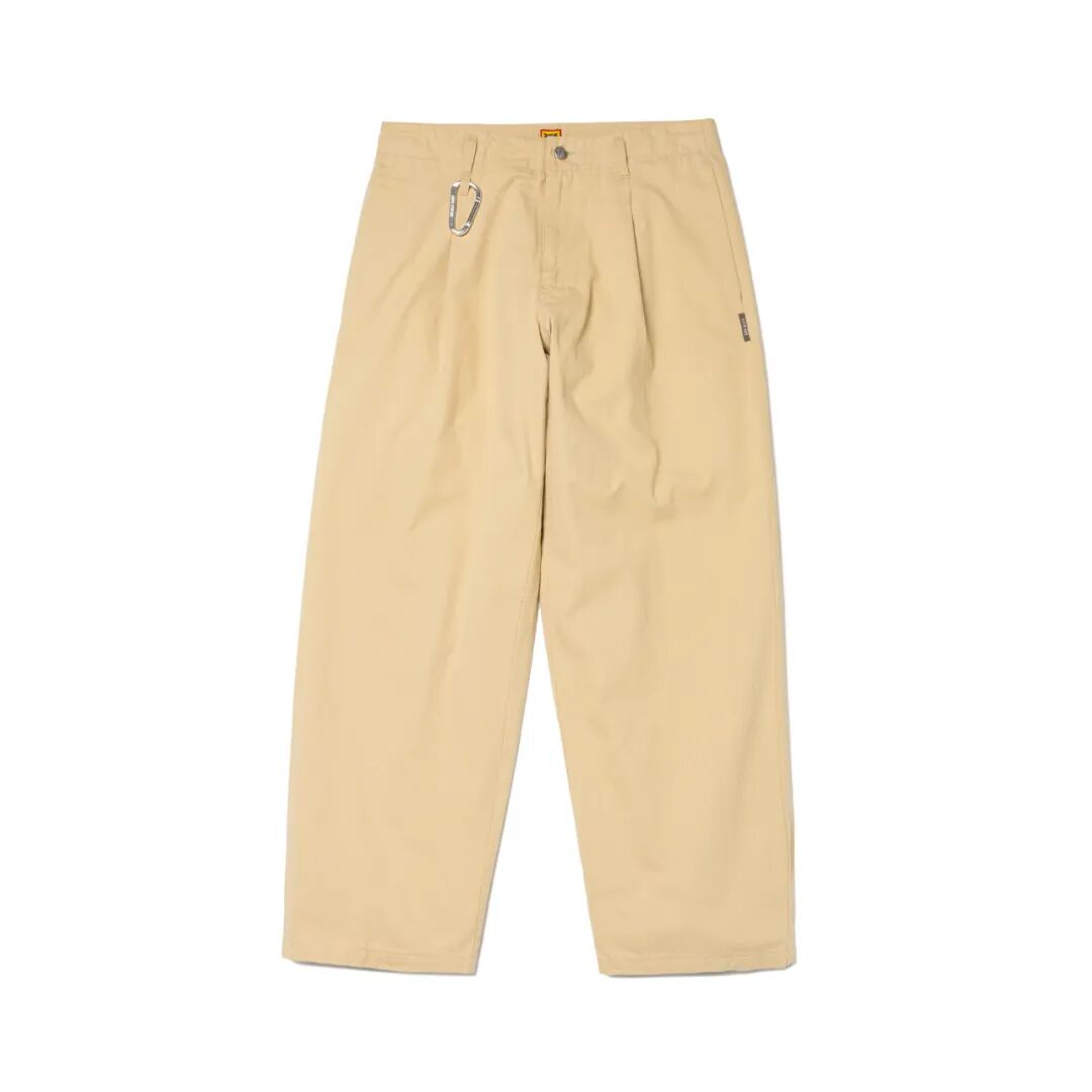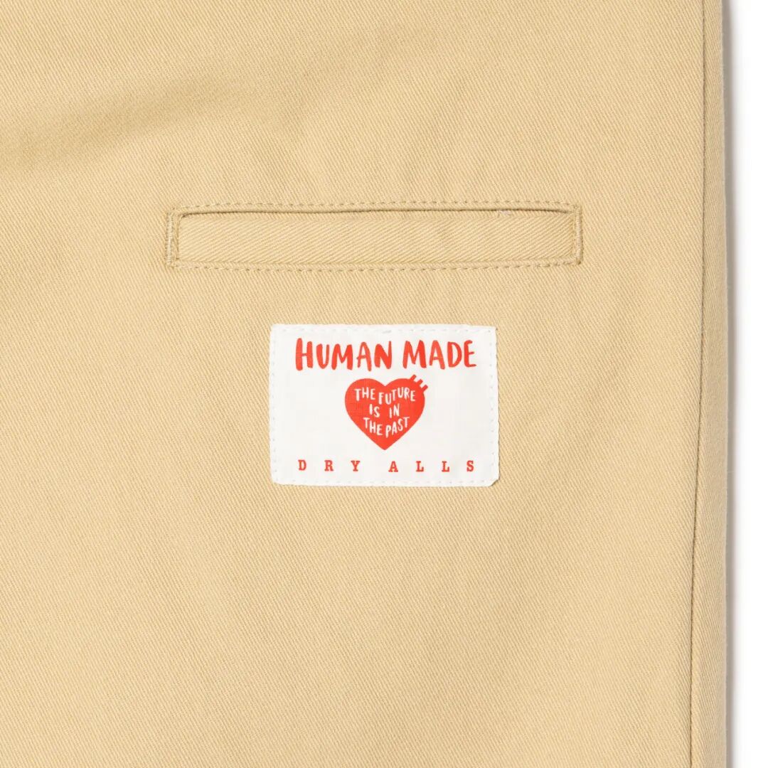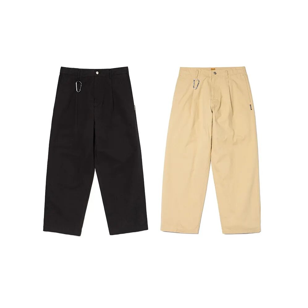 HUMAN MADE 宽松廓形剪裁的奇诺裤,两侧有可容纳手机的口袋,腰部搭配登山扣设计,让极简亦可兼具实用,充满趣味。