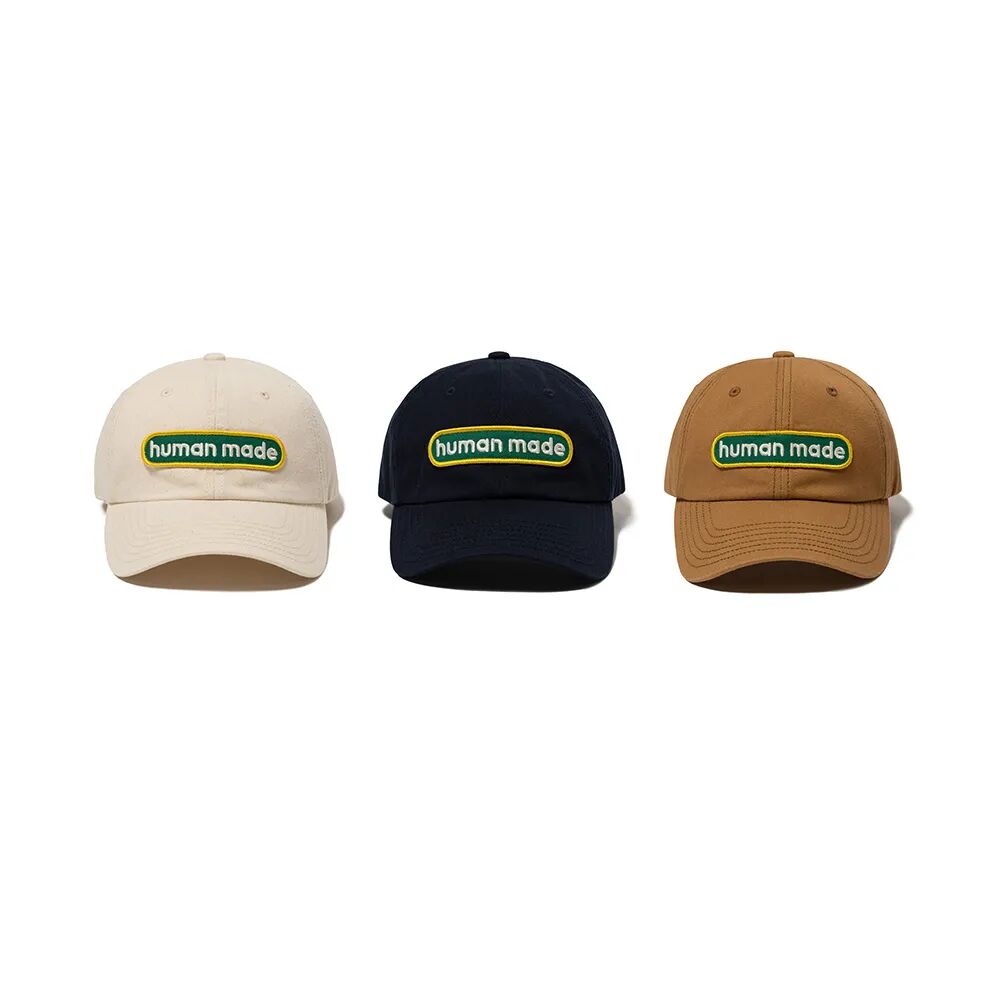 HUMAN MADE 棉质六片式棒球帽,正面的HUMAN MADE标志以徽章形式呈现。后部可调整尺寸。