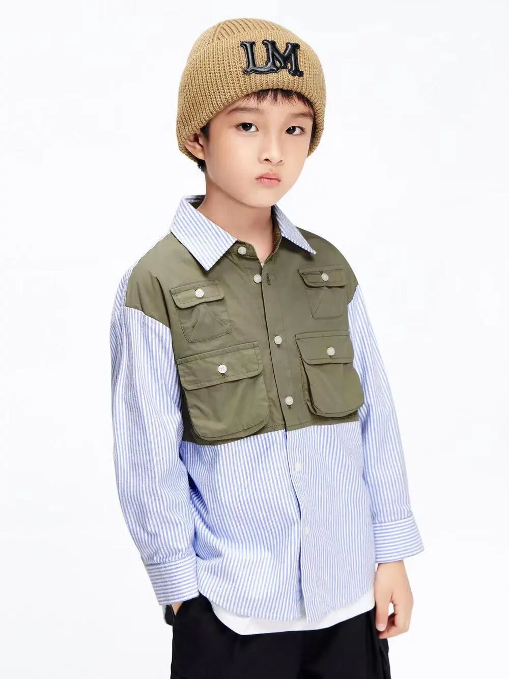 ▲男大童条纹拼接衬衫¥569,折后价¥186