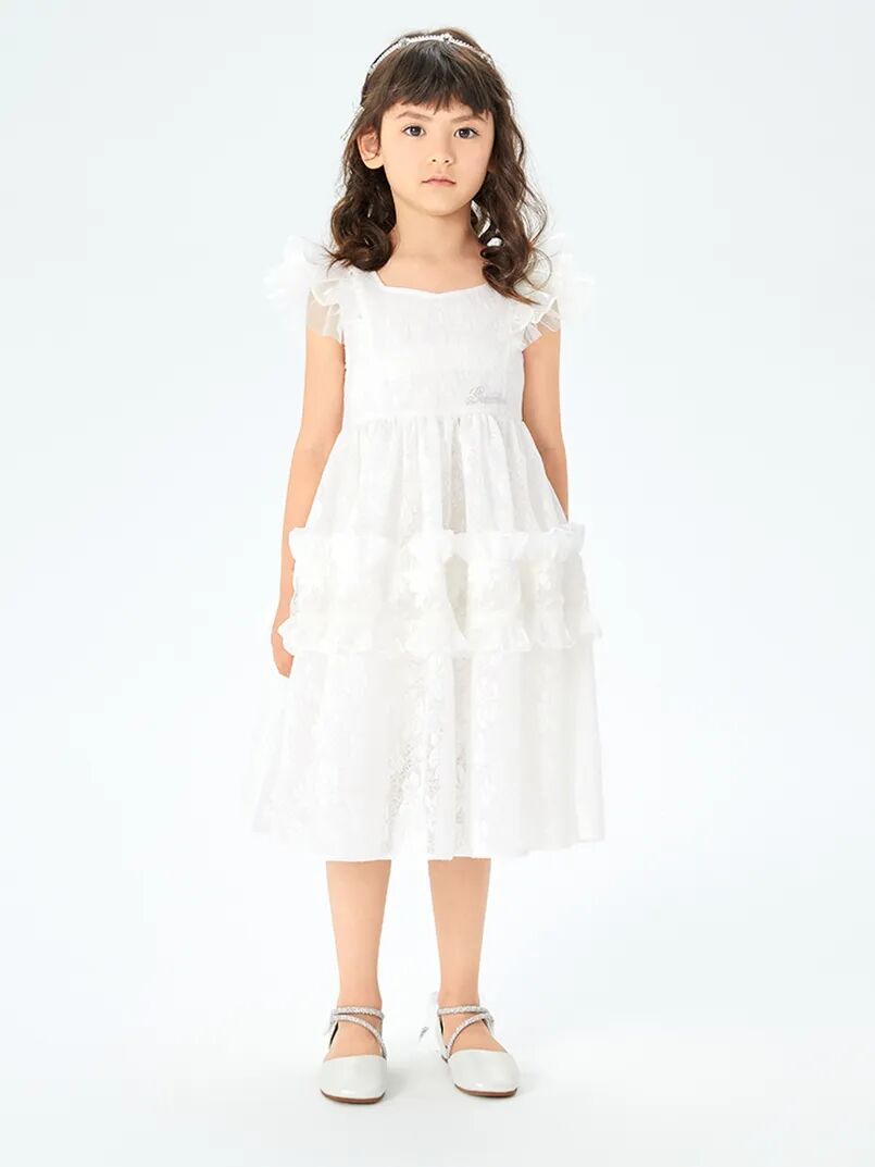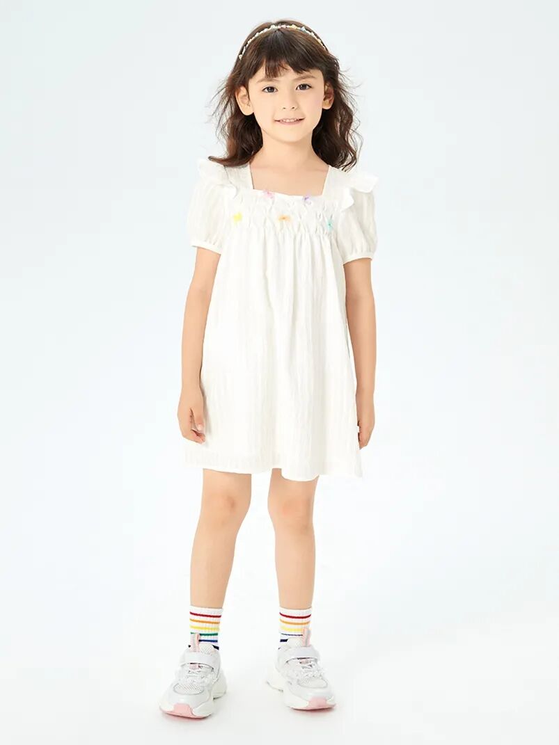 ▲女童白色方领连衣裙¥499,折后价¥299.4