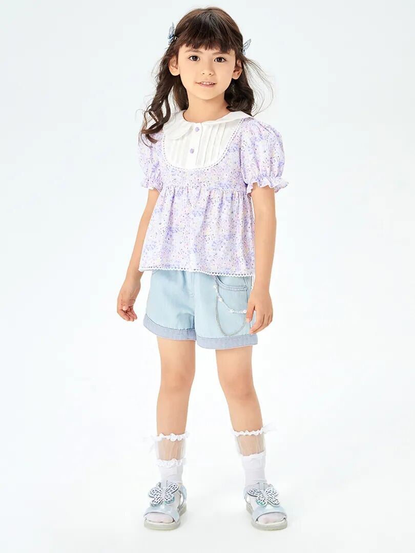 ▲女童翻领轻薄短袖上衣¥369,折后价¥221.4