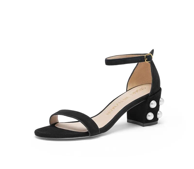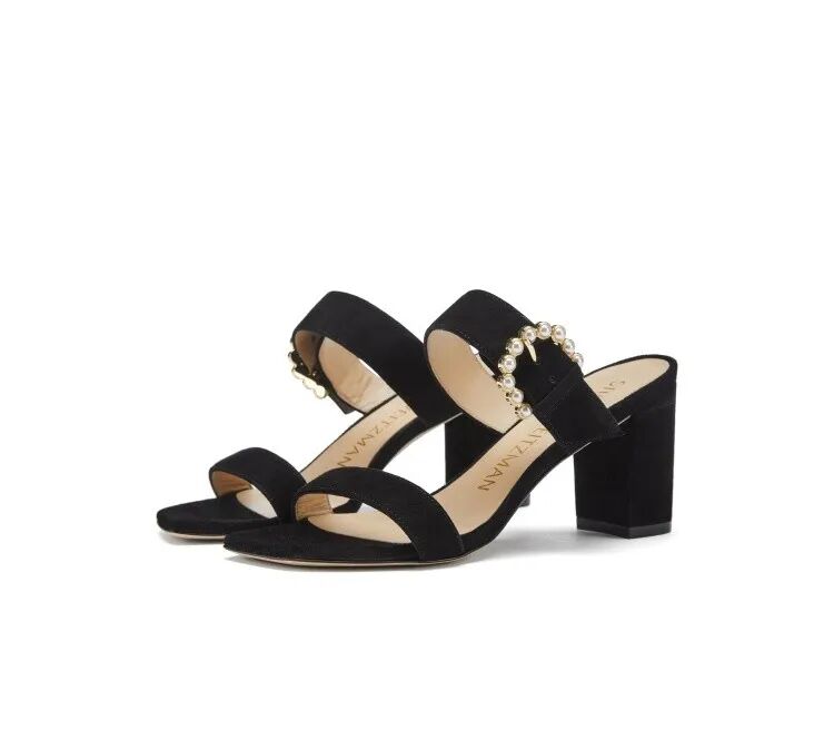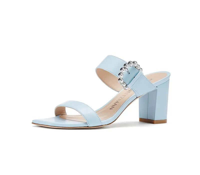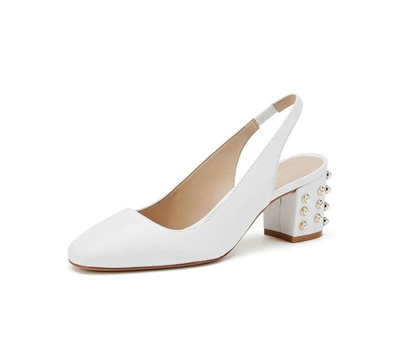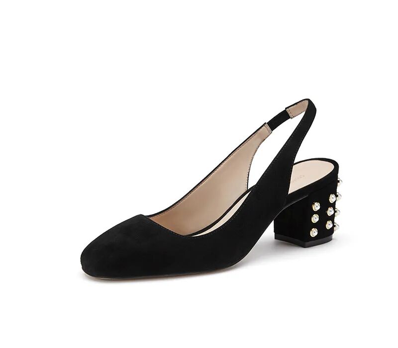 牛皮珍珠圆扣粗高跟凉拖鞋¥3950,折后价¥1200