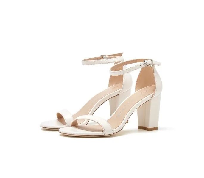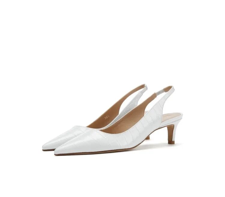 一字带白牛皮细高跟凉鞋¥4100,折后价¥1500