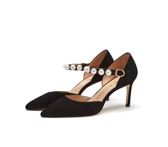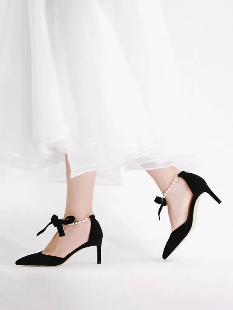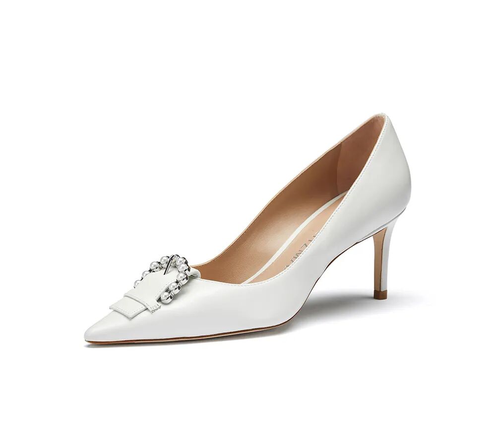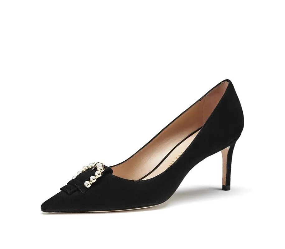 羊皮珍珠带中空细高跟鞋¥4300,折后价¥1500