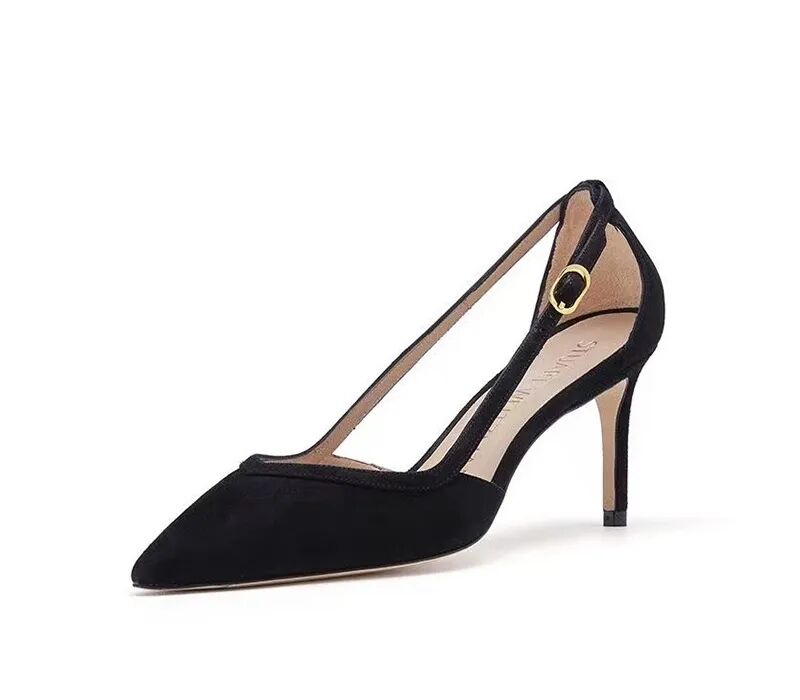 羊皮磨砂面后空细高跟鞋¥3850,折后价¥1500