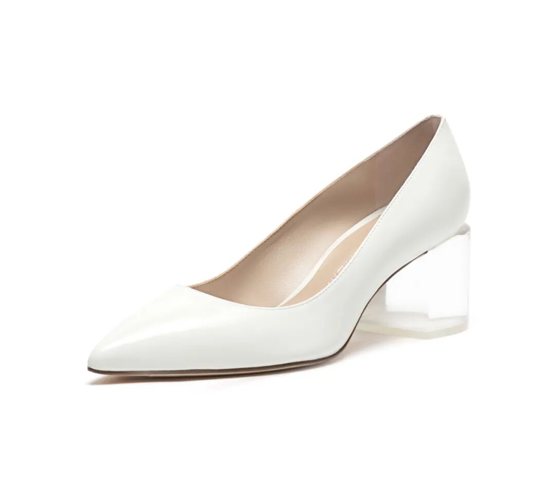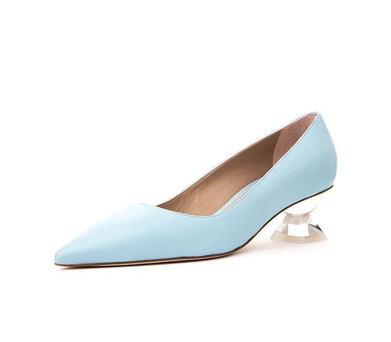 ▲牛皮浅口透明粗跟鞋¥4300,折后价¥1080