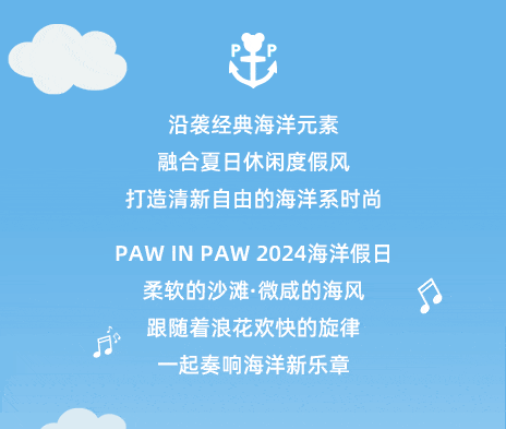 经典海洋元素的变奏发挥,打造松弛感宝贝。Paw in Paw全新海洋假日系列童装上市,新款8折;更有精选商品4-5折优惠。