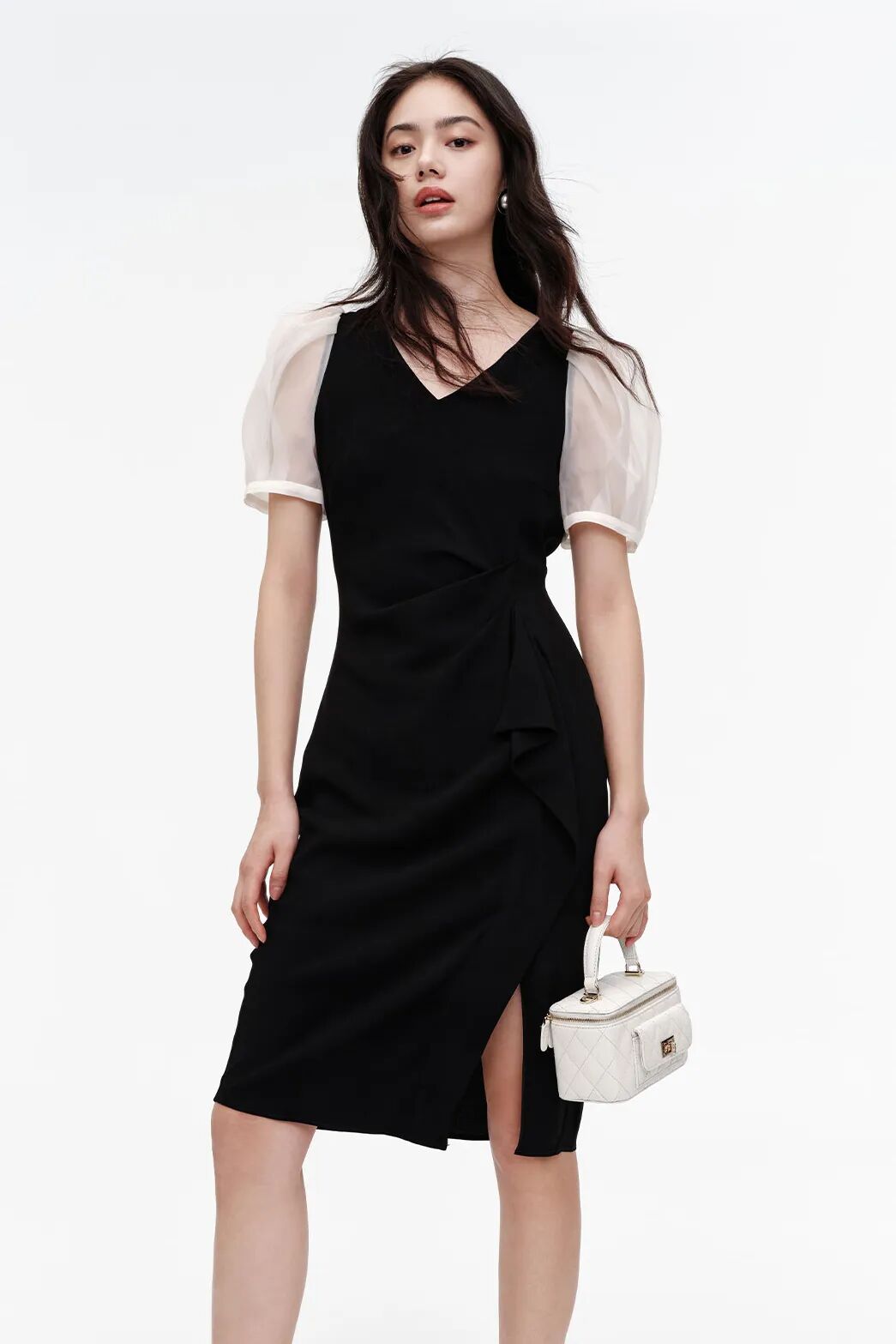 ▲欧根纱拼接抽褶连衣裙¥899,折后价¥764.1