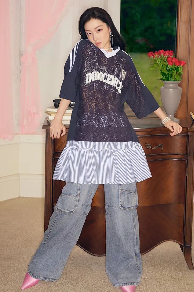▲蕾丝印花拼接上衣¥995,折后价¥895