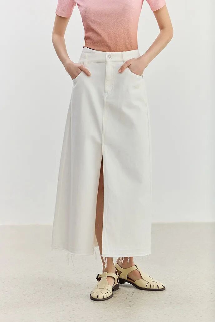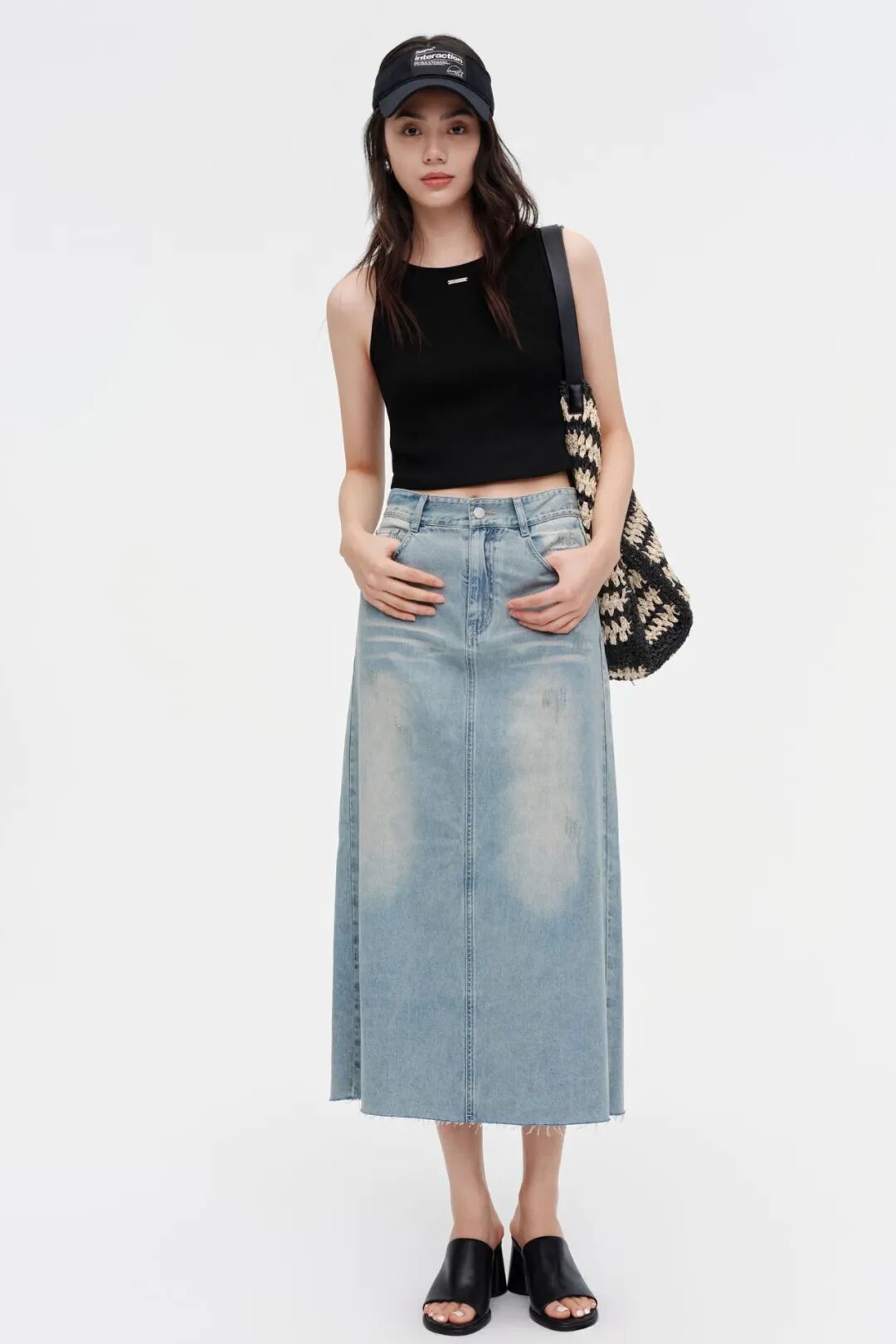 ▲直筒牛仔半裙¥549,折后价¥494.1
