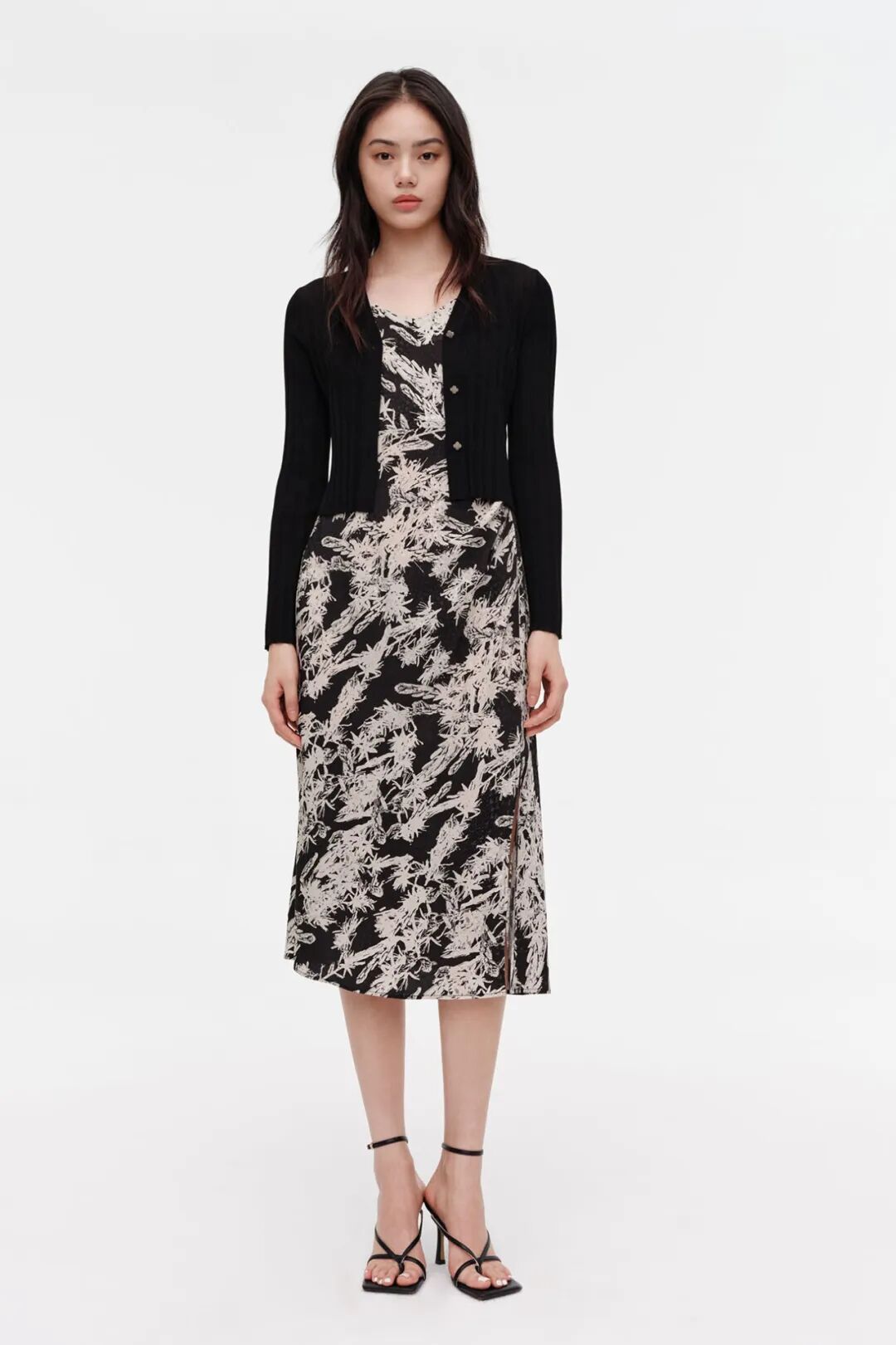 ▲印花吊带连衣裙¥1199,折后价¥1019.1