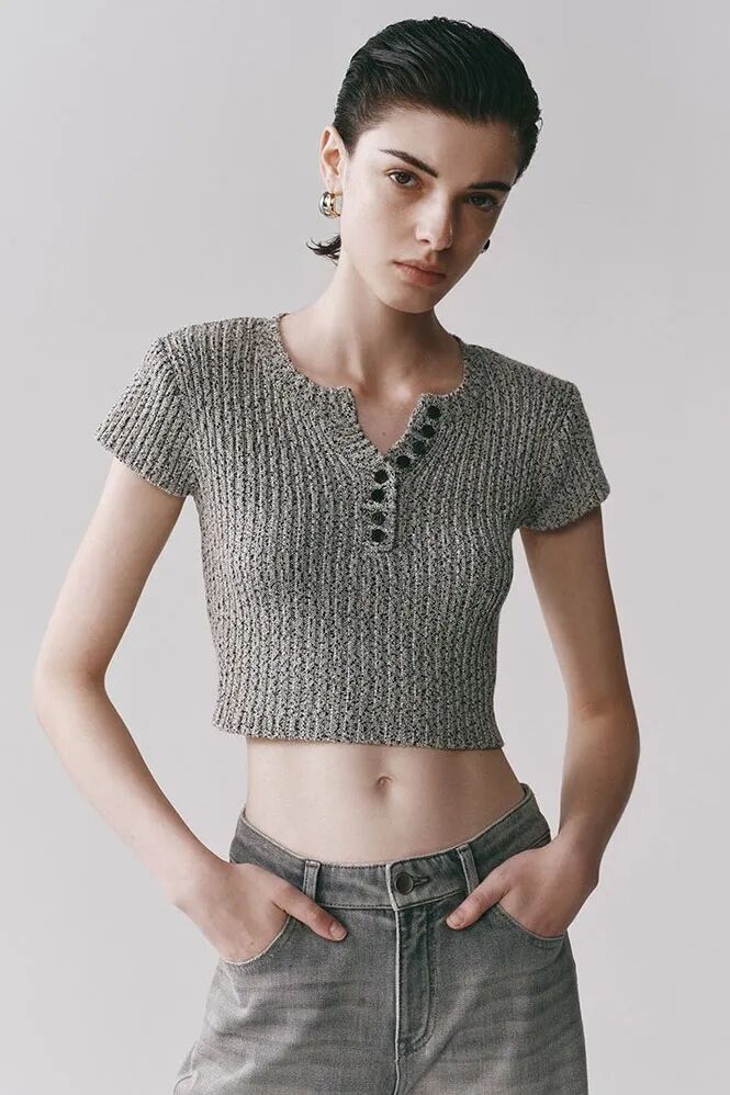 ▲条纹短袖针织衫¥699,折后价¥559.2