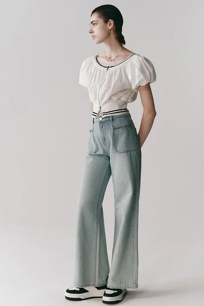 ▲高腰微喇牛仔裤¥599,折后价¥539.1