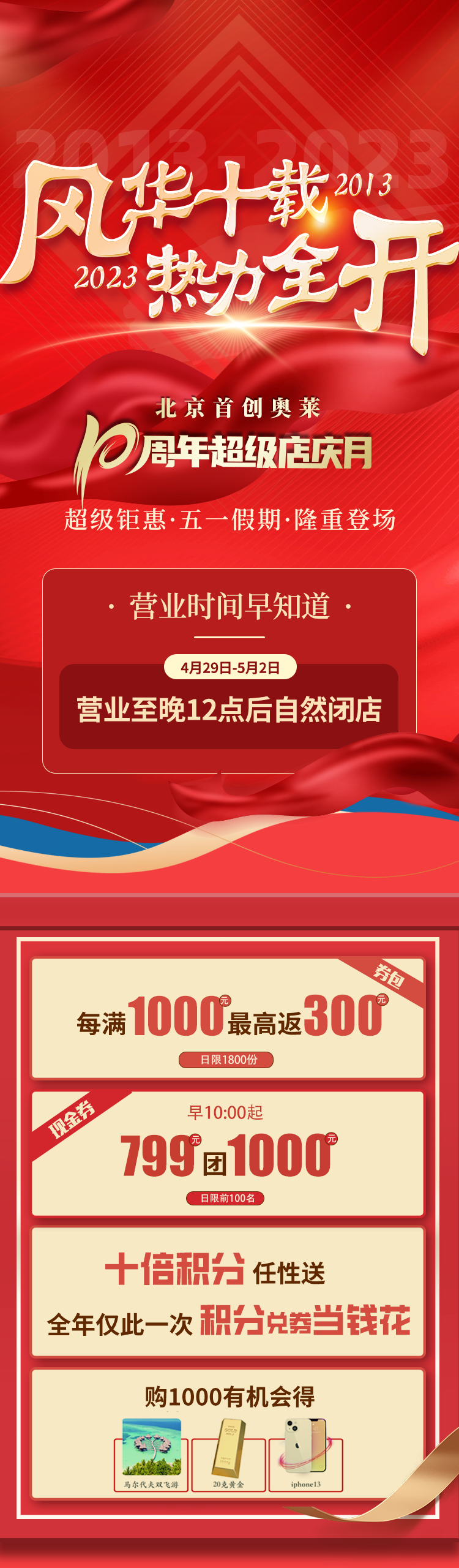 注:所有赠品数量有限,先到先得,赠完即止;赠券使用规则请以券面明示为准;上述各品牌促销以店内公示为准;北京首创奥莱有权在法律允许的范围内对活动进行微调