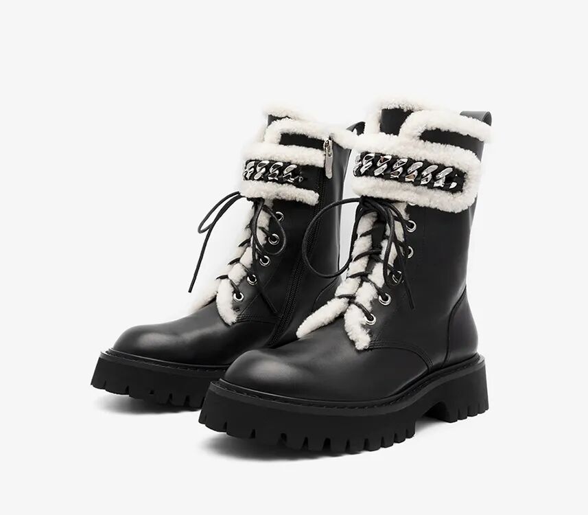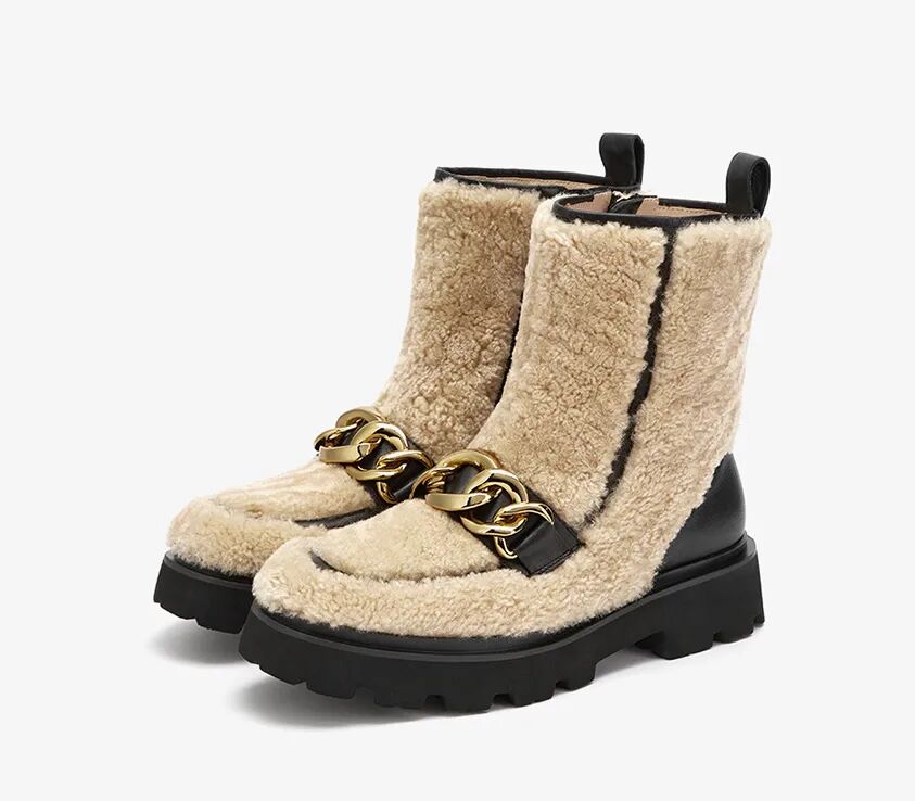 哥德堡 牛皮绑带厚底毛毛靴 ¥1760,折后价¥799