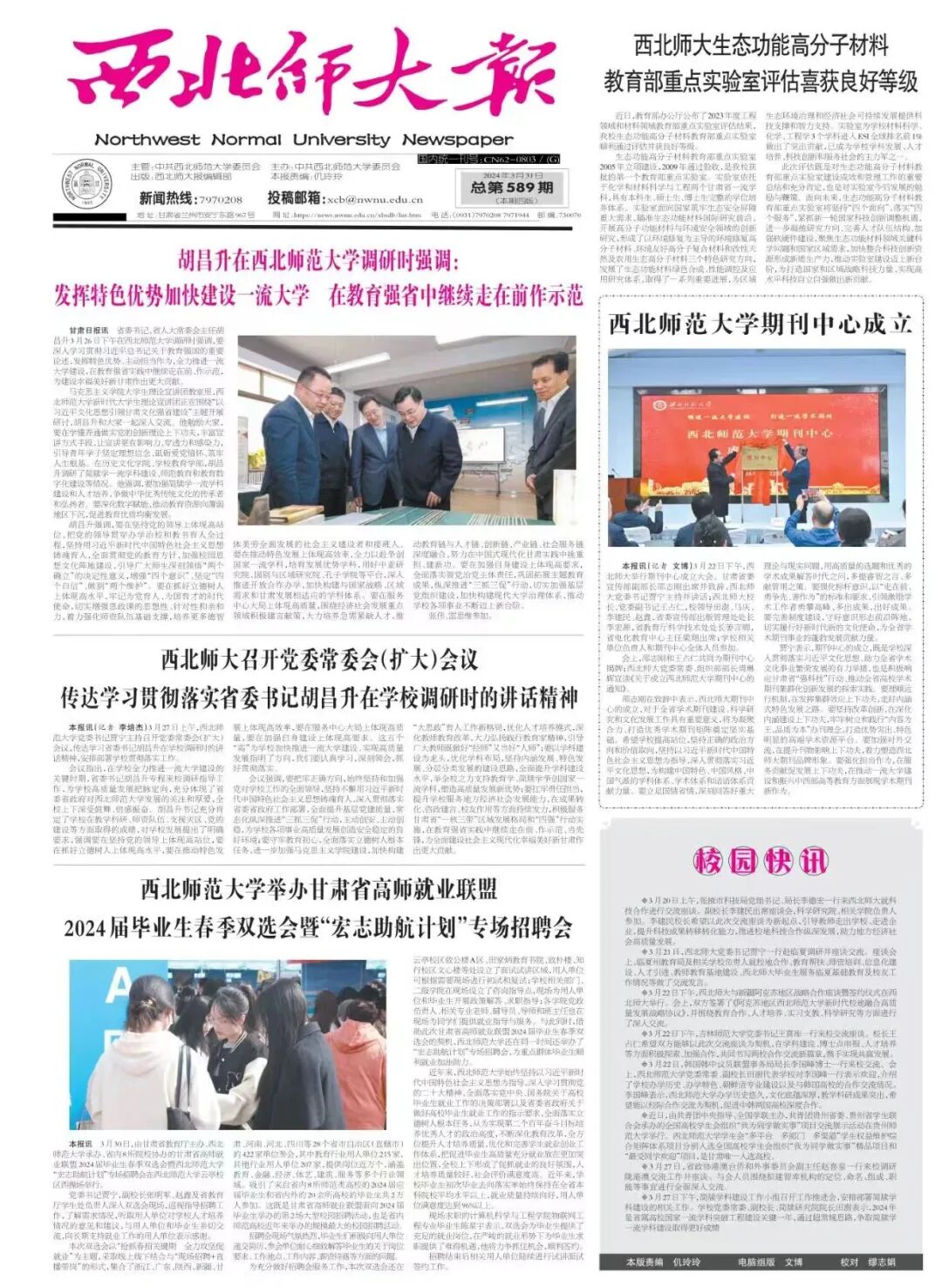 西北师大召开党委常委会(扩大)会议 传达学习贯彻落实省委书记胡昌升在学校调研时的讲话精神