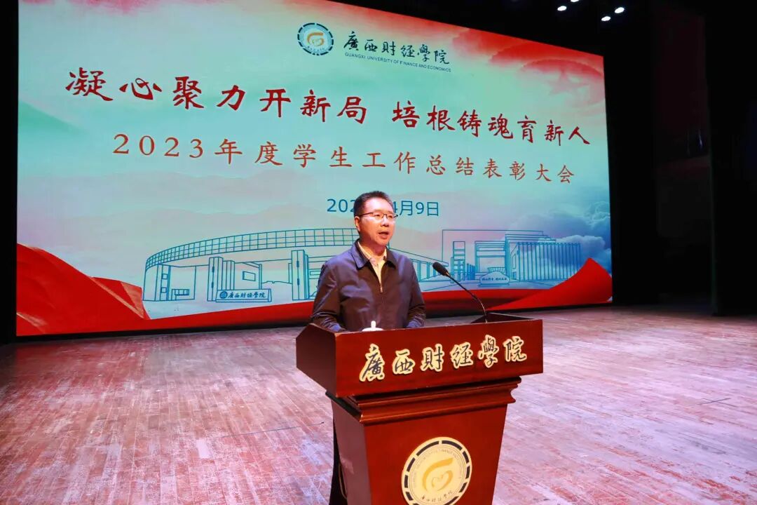 长期以来,学校高度重视学生工作,积极推进“三全育人”新格局,构建“十大育人”体系。各部门、单位团结协作、高效互补,同学们的爱校荣校意识和综合素质不断提升,学生工作硕果累累,立德树人的协同效应和群雁效应逐步显现。2024年,全体广财学工人将坚持学方略、谋创新、抓落实,以更加饱满的精神面貌、更加强烈的使命担当、更加务实的工作作风和学习劲头,投入各项学习、工作中,为奋力谱写中国式现代化广西篇章贡献更多的广财力量,以优异成绩迎接新中国成立75周年!