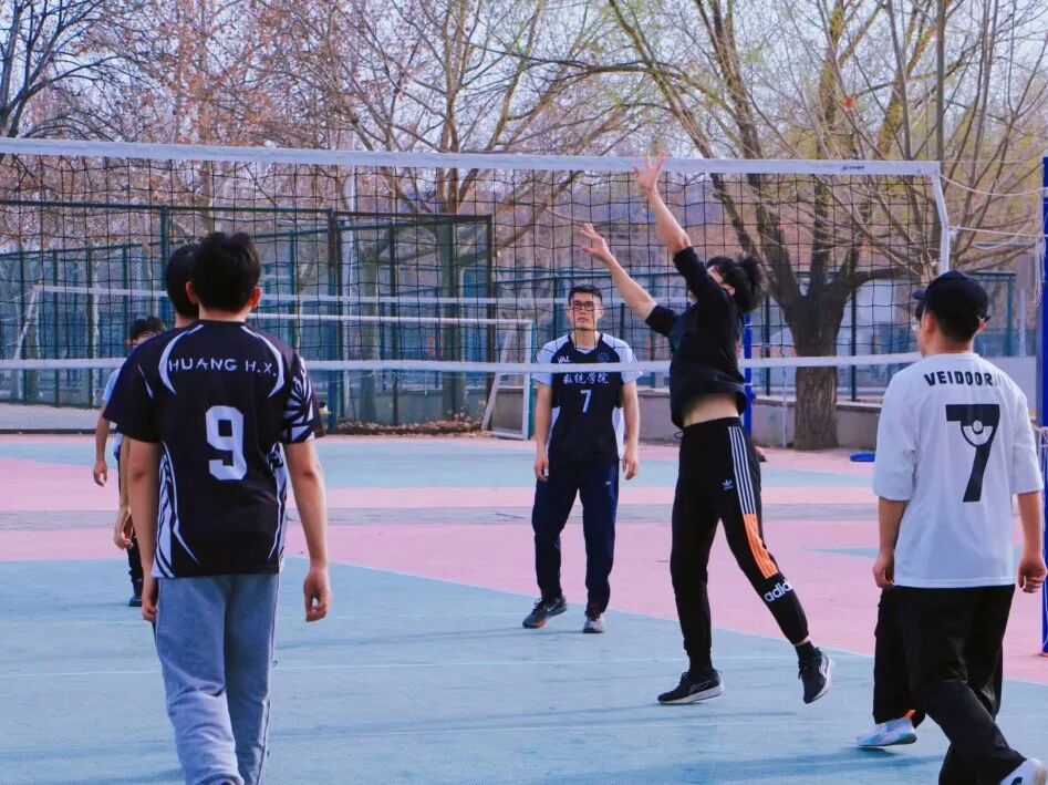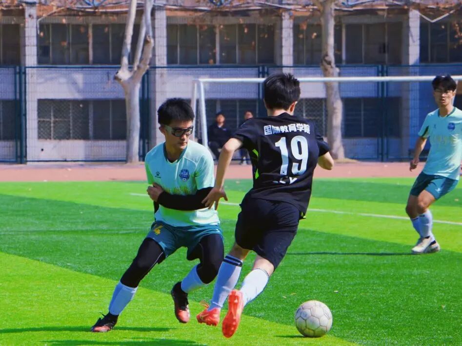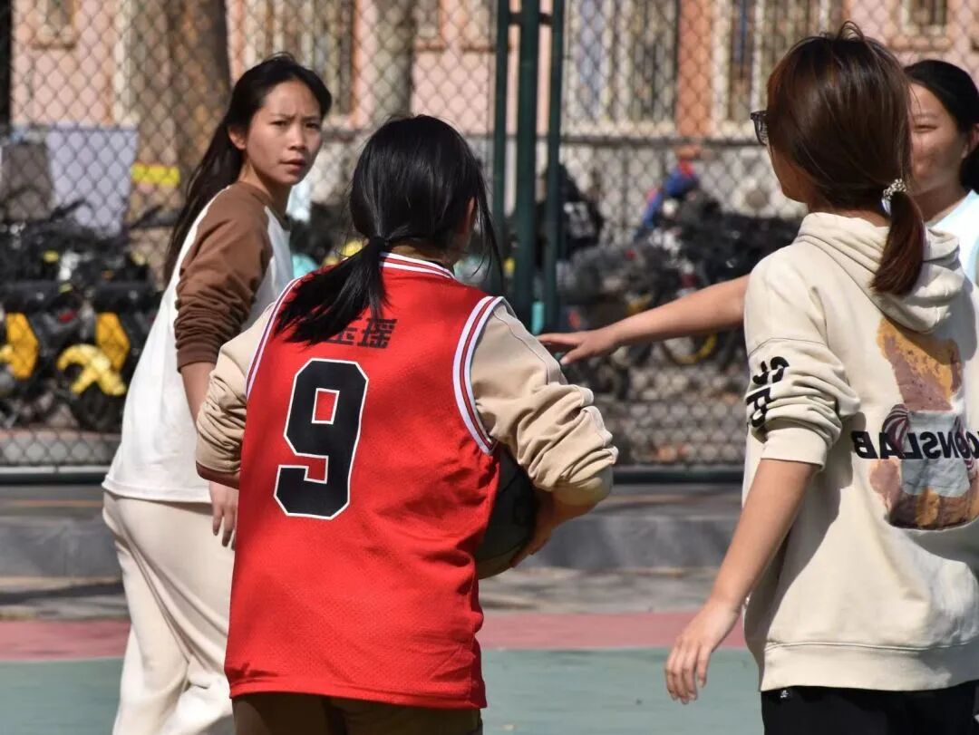 和朋友在操场上打球跑步