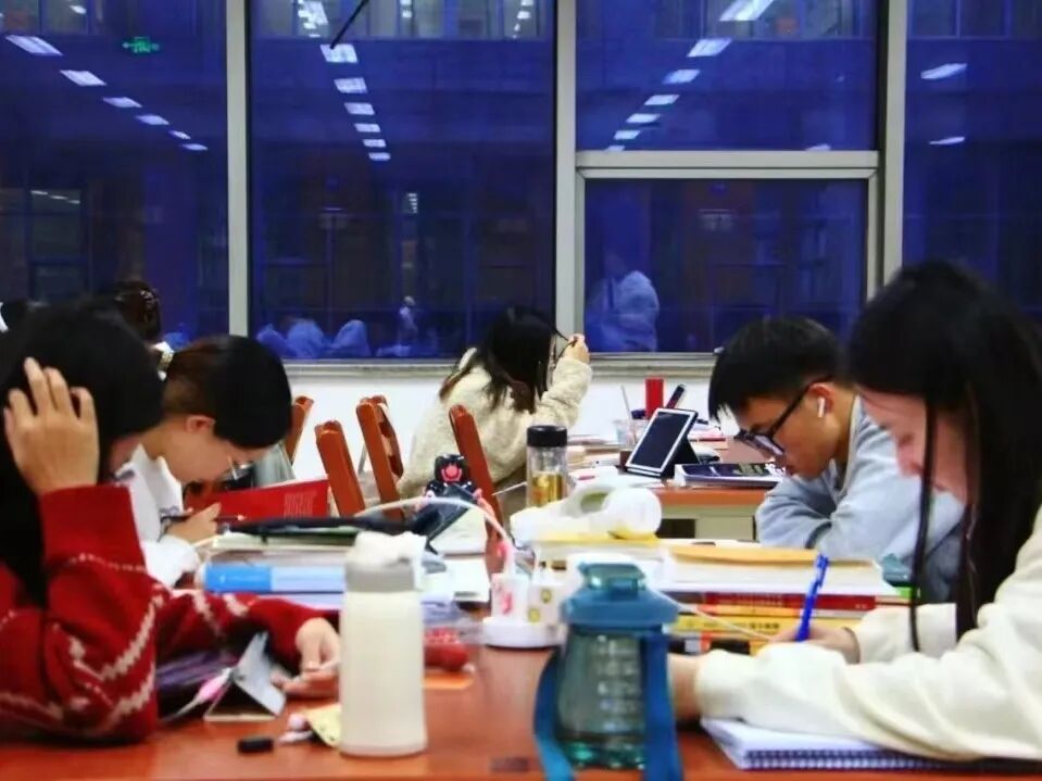 静心沉浸在书本的海洋中