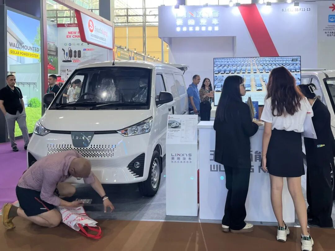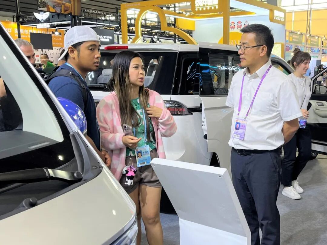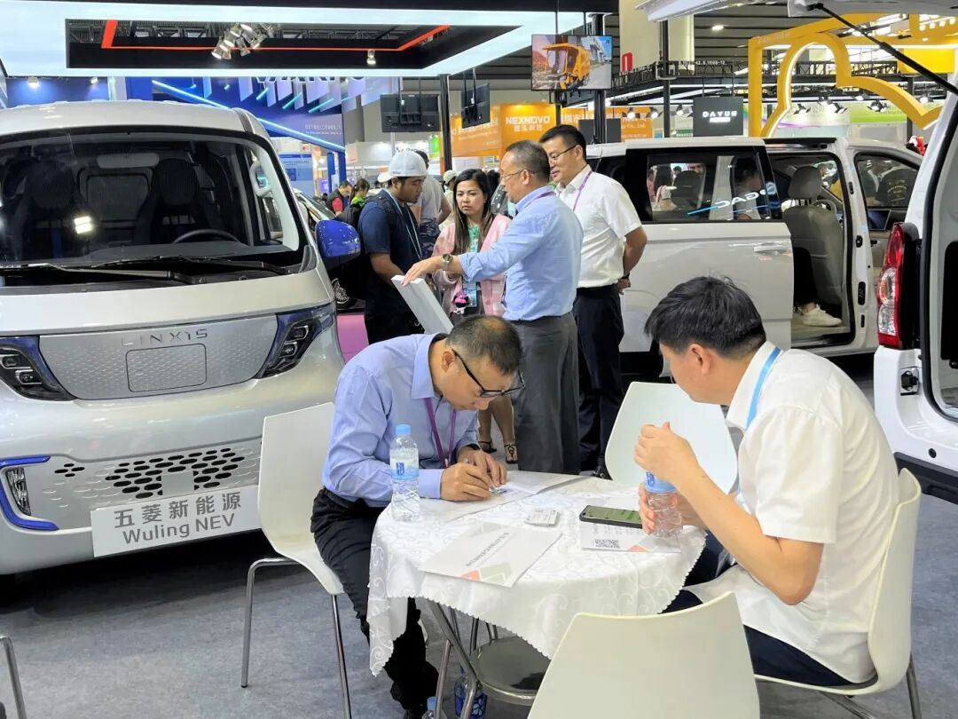 三款全新车型的出现,吸引了众多来自全球各地的采购商关注。其中,澳洲和非洲的客户对G100R右舵电动物流车的性能和特点表现出了浓厚的兴趣;中东和中亚的客户对G200插电混动MPV出色的性能和实用性赞不绝口;东南亚客户则是特别青睐小巧灵活的G050微型物流车。